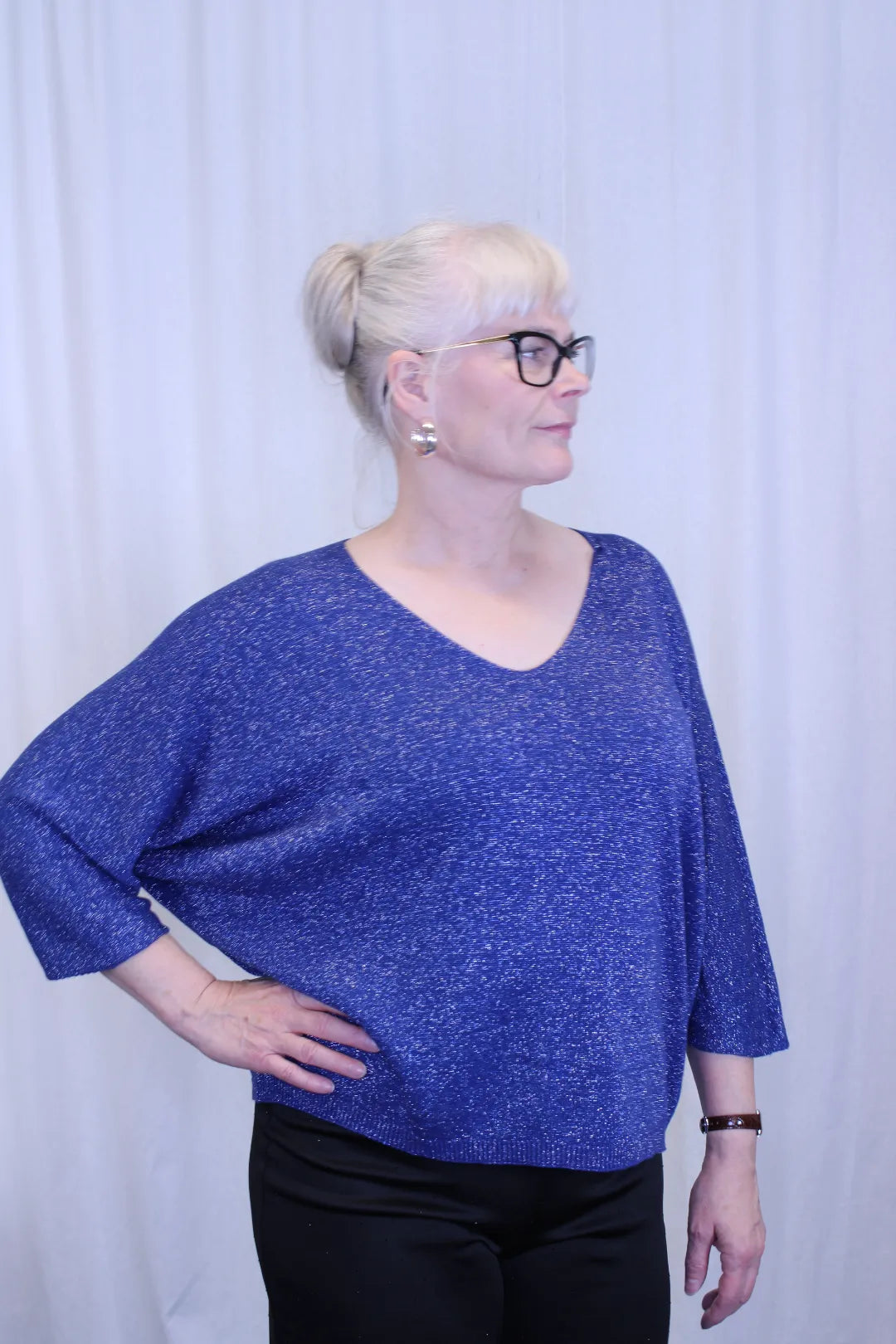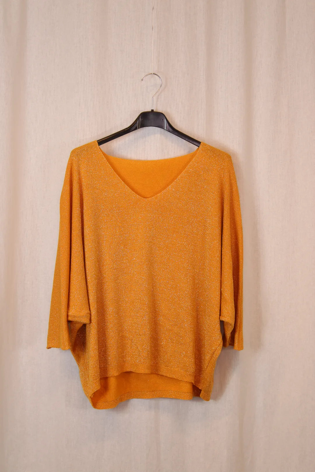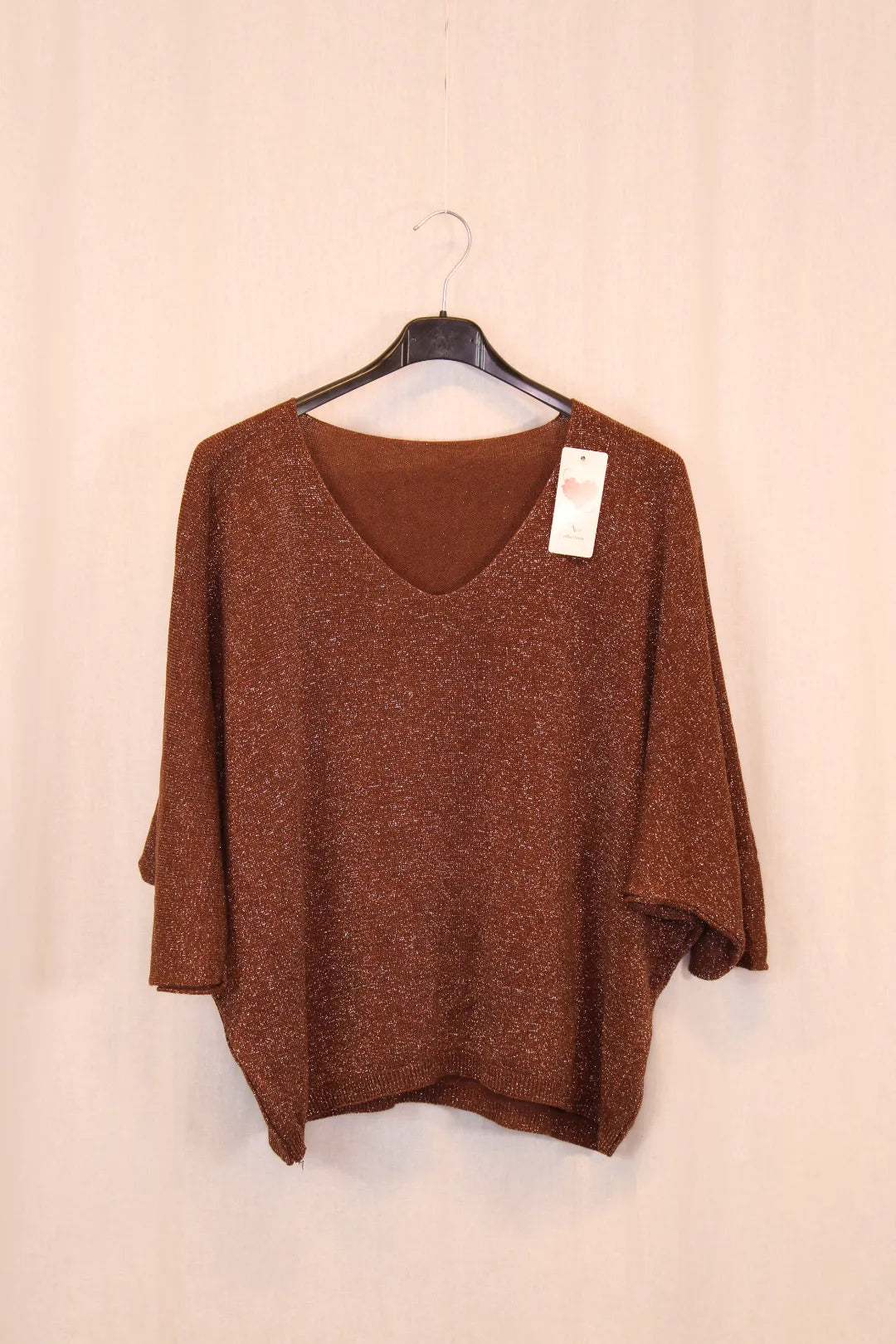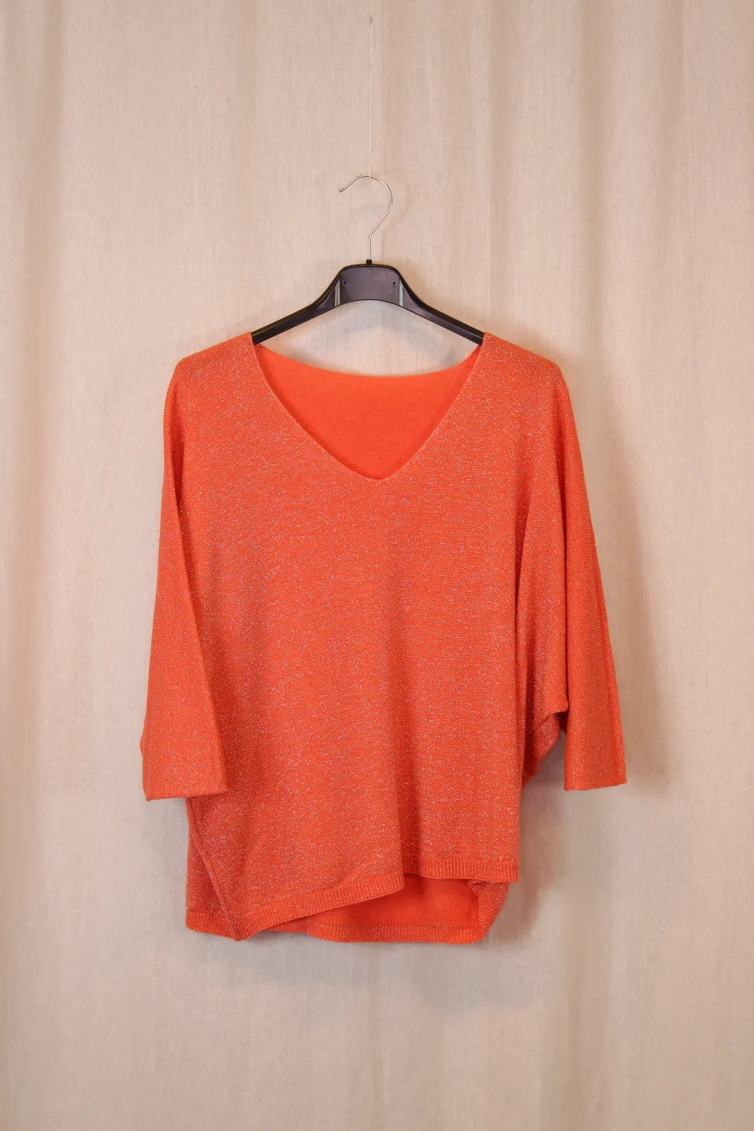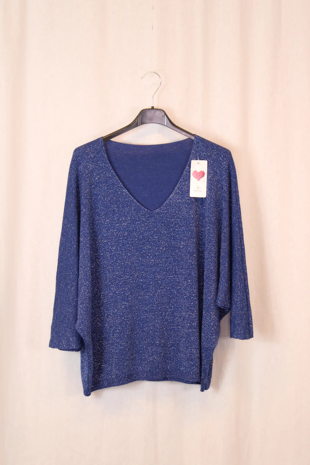 Ihana ohut pehmeä neule V mallisella pääntiellä. Kauttaaltaan kimaltavaa.
