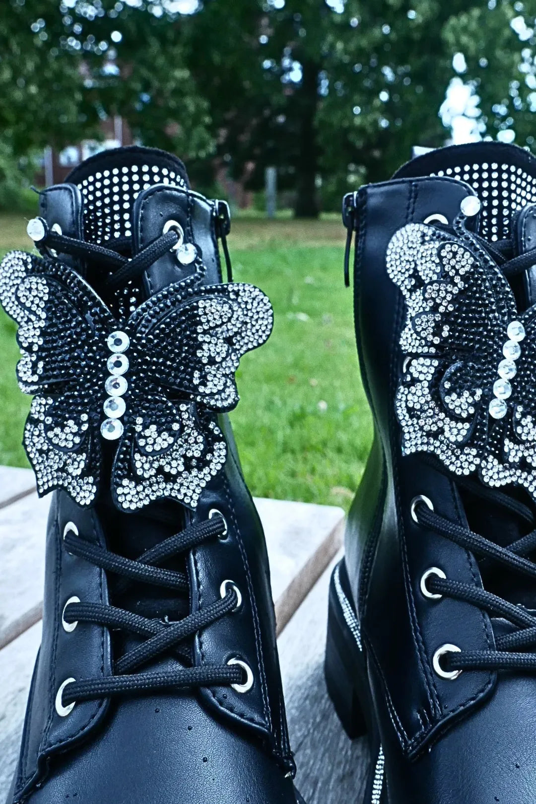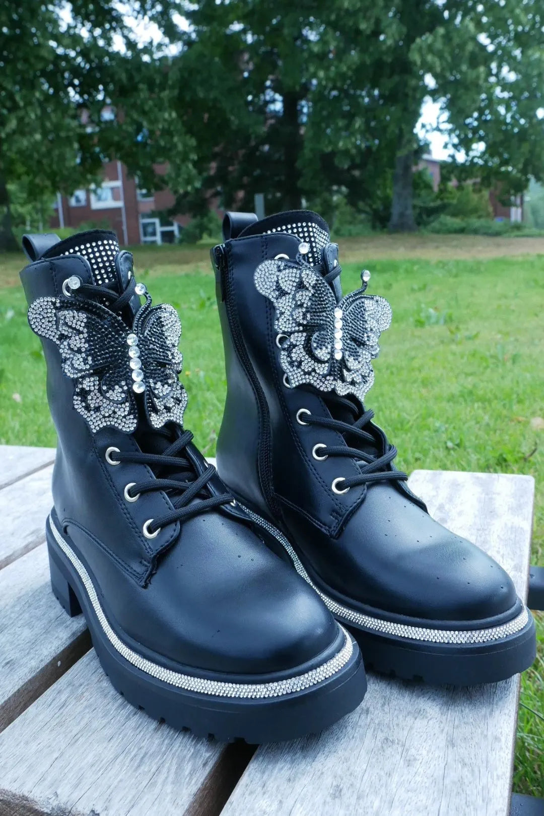 Kauniit maiharit näyttävällä kimalleperhosella. Vetoketju, sekä nauhat.