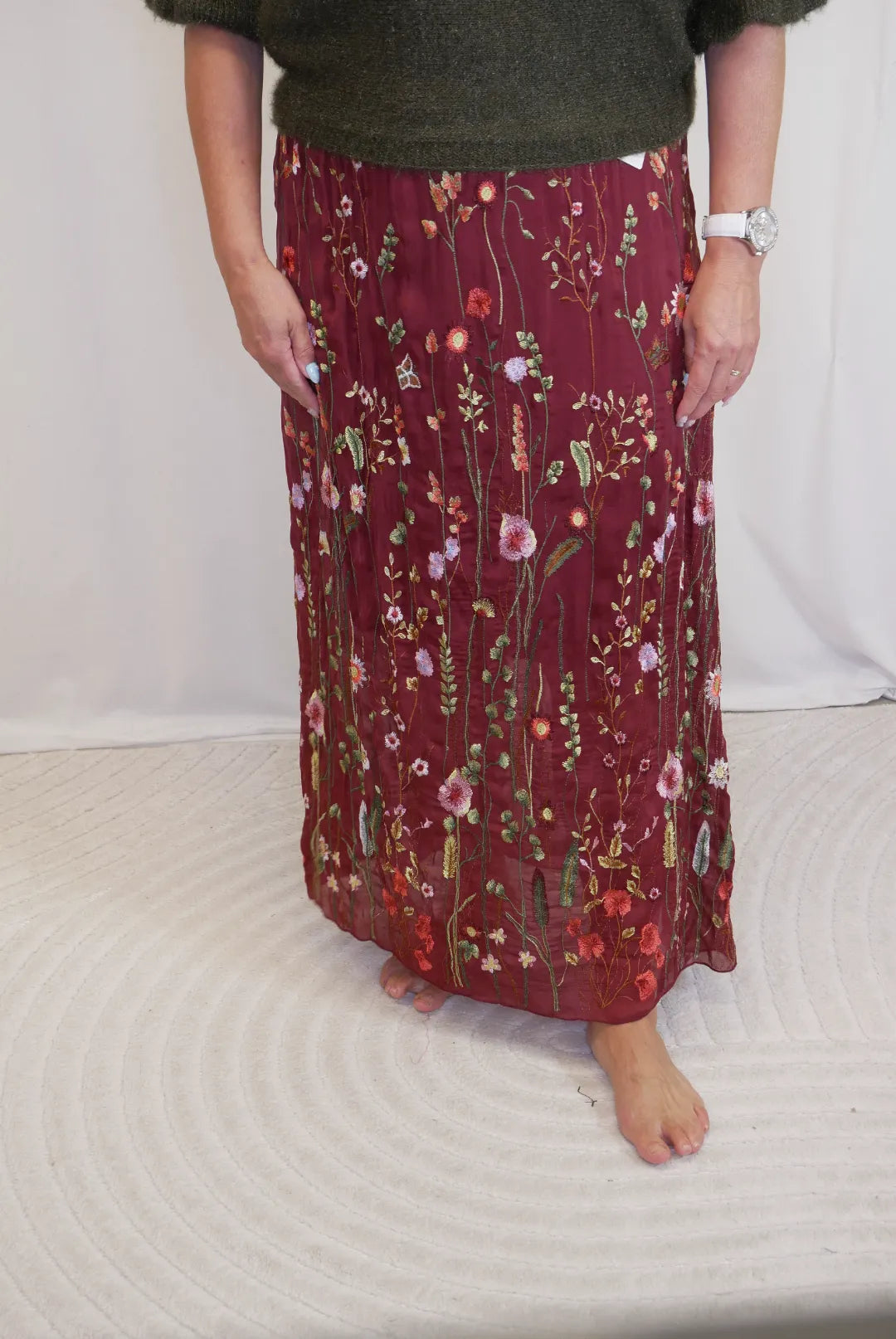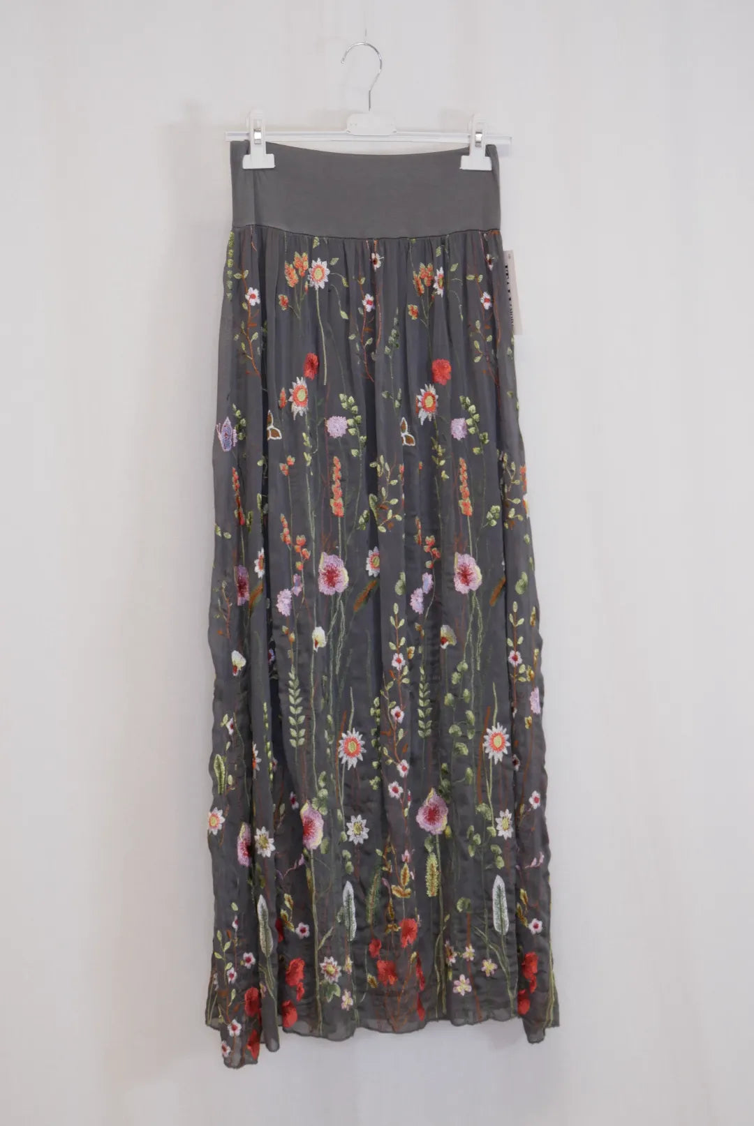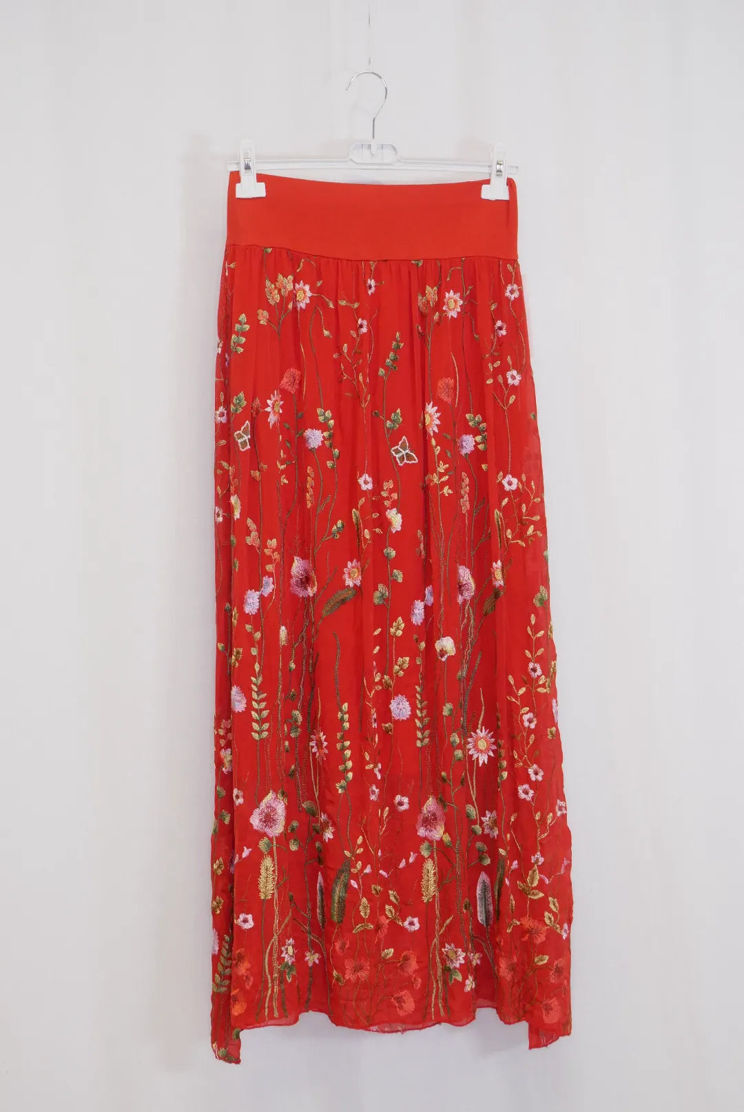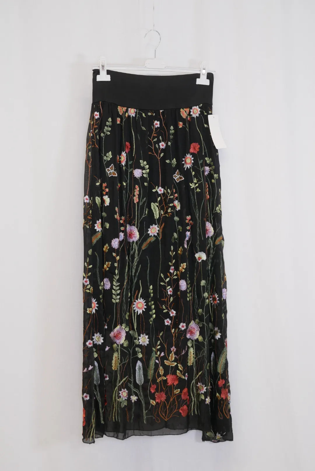 Kaunis kukkakirjailtu hame. Joustava vyötäröresori ja alushame.