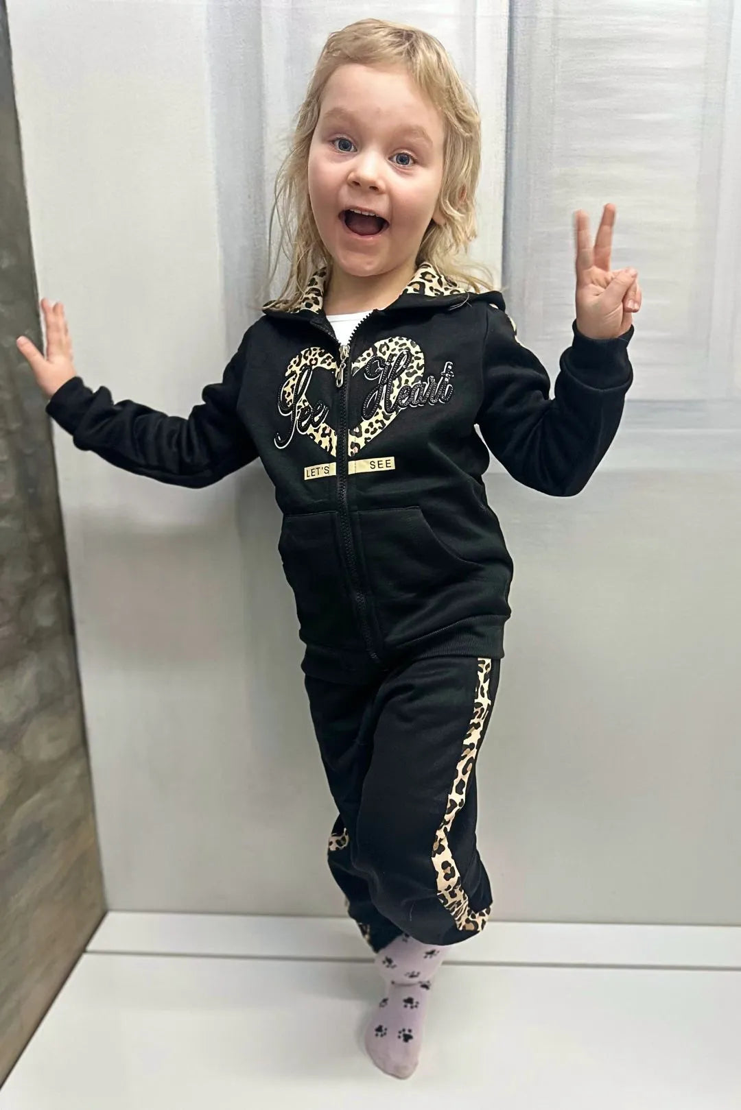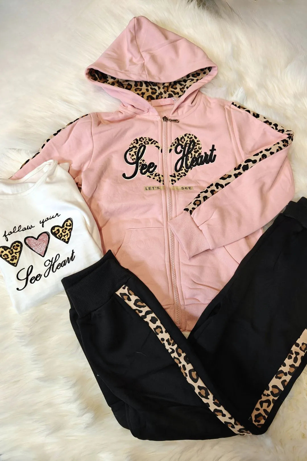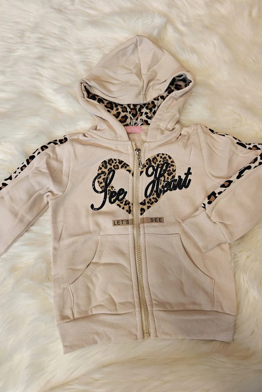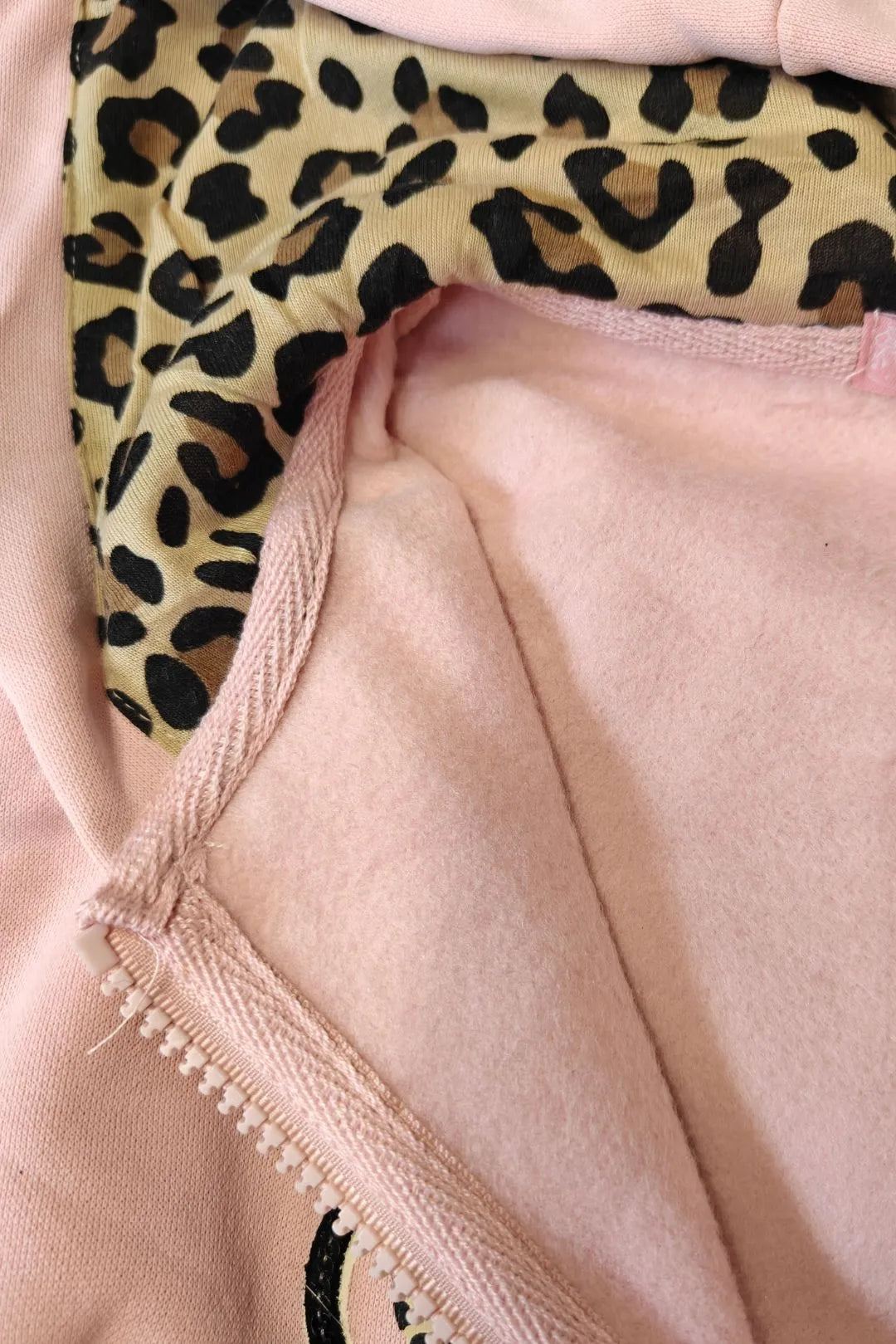 Hupparissa on leopardikuvioita hupussa ja hihan myötäisesti sekä sydänprintti, housuissa vastaavat leopardisomiste lahkeen myötäisesti.  Tämä setti on erinomainen valinta päiväkotiin, ulkoleikkeihin, kyläilyyn ja lahjaksi vaikka pukinkonttiin 😍.