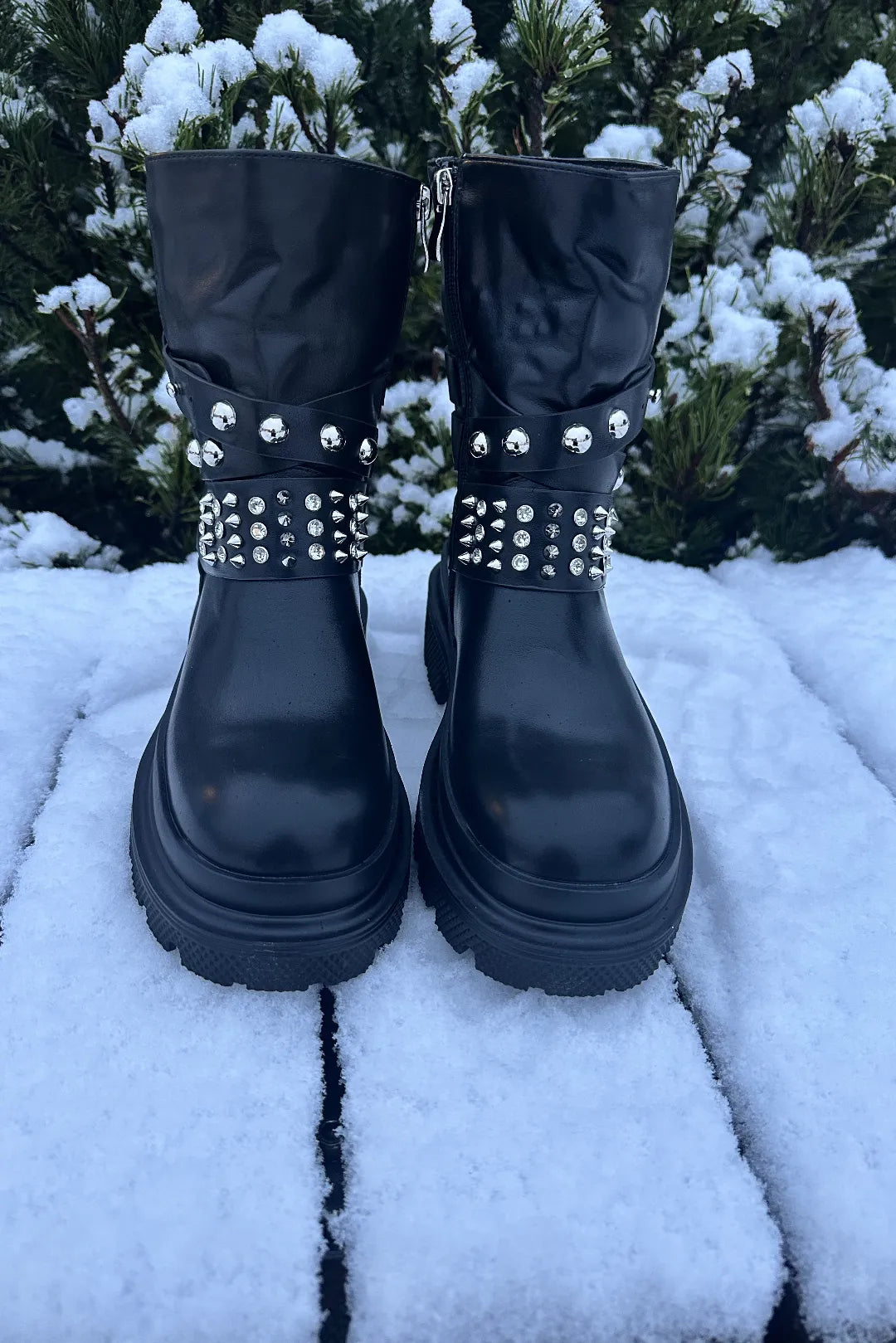 Nämä Niittinilkkurit ovat täydellinen valinta sinulle, kun haluat yhdistää käytännöllisyyden ja rohkean tyylin. Näissä nilkkureissa on katseenvangitseva remmikoristelu, jossa yhdistyvät metalliniitit ja kimaltavat strassiyksityiskohdat. Kokonaisuus luo näyttävän hiukan rock-henkisen ilmeen ilman, että mukavuudesta täytyy tinkiä.