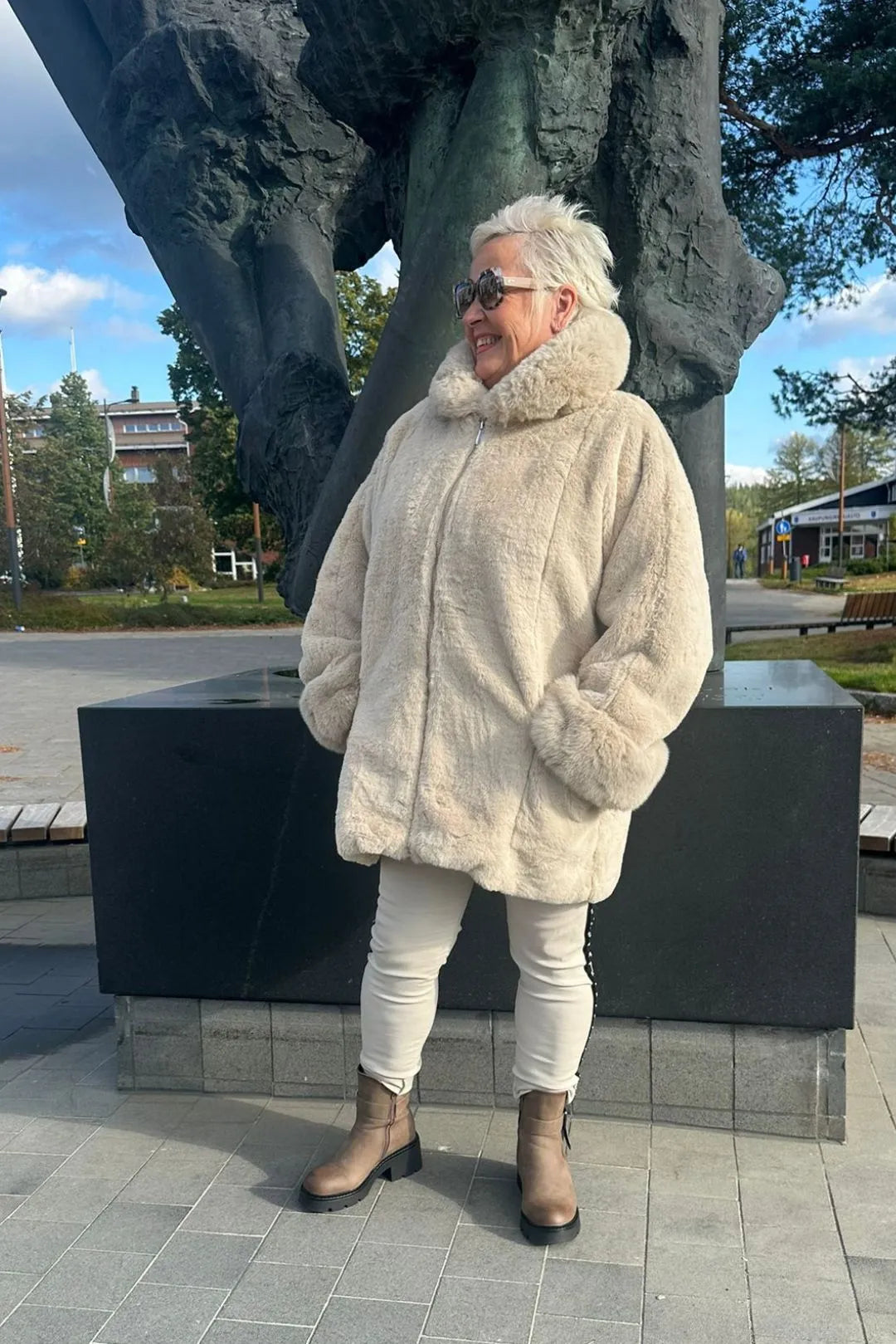 Pehmeä tekoturkis vuorella. Vetoketjukiinnitys.