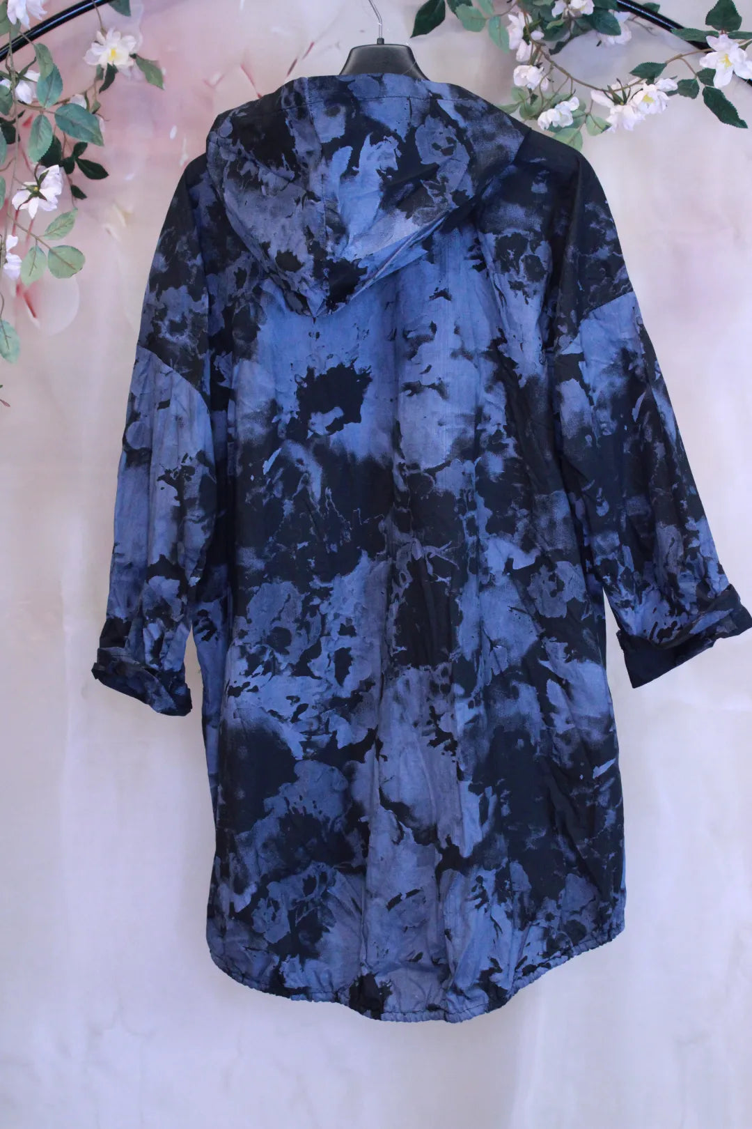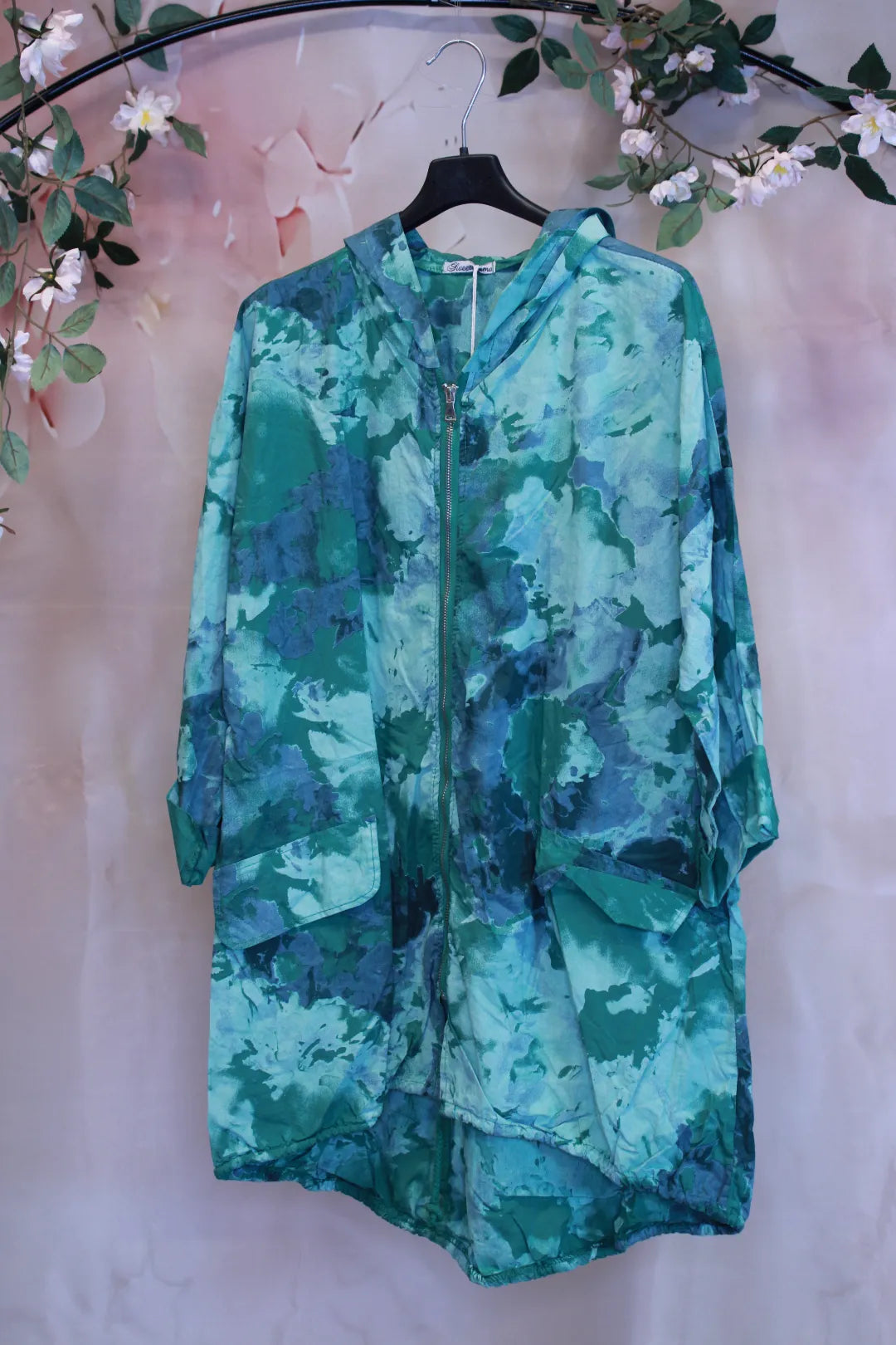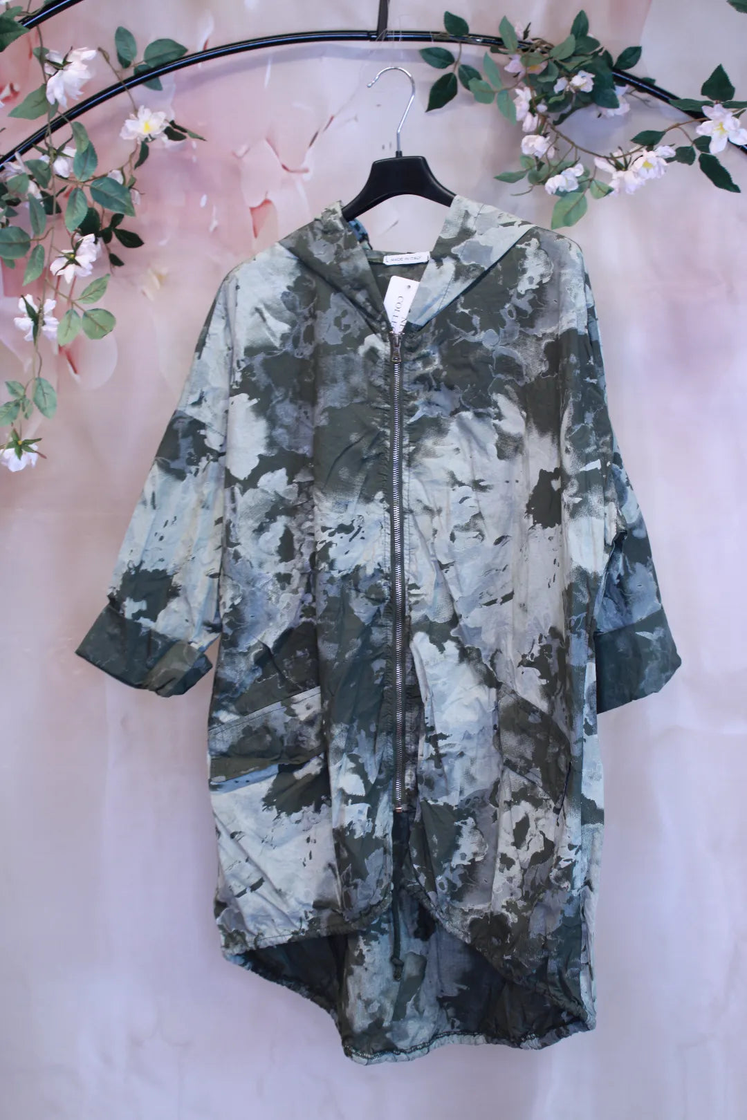Takin väritys on useampaa eri väriä, joka antaa sille hieman boheemin ulkonäön. Takin helmassa on nauhat, joilla sitä voi kiristää.