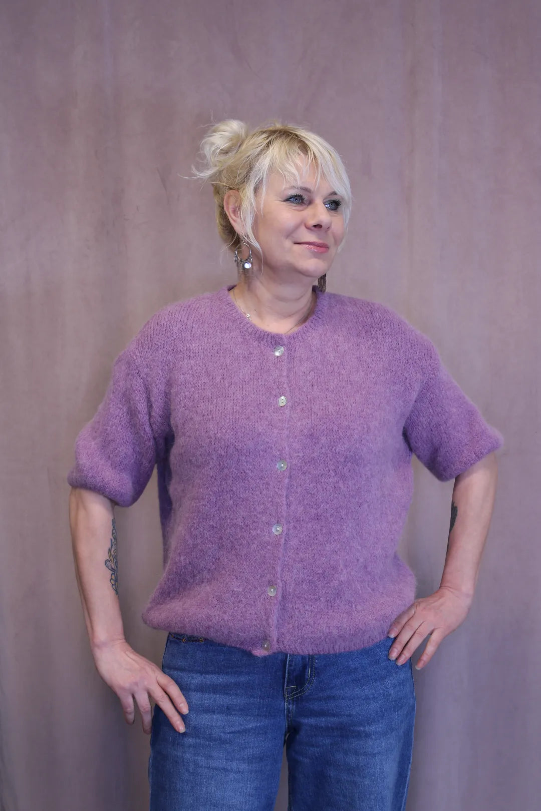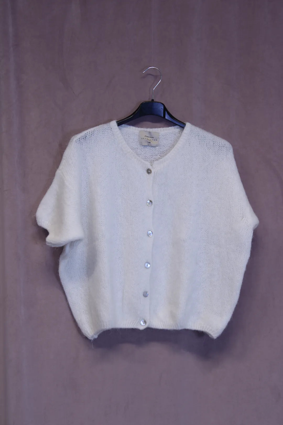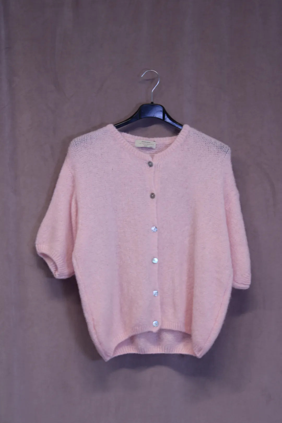 Pehmeä, lyhythihainen neule. Ihanan laadukas ja lämmin materiaali, jossa yli puolet ihanan pehmeää alpakan villaa. Edessä pienet sirot napit.
