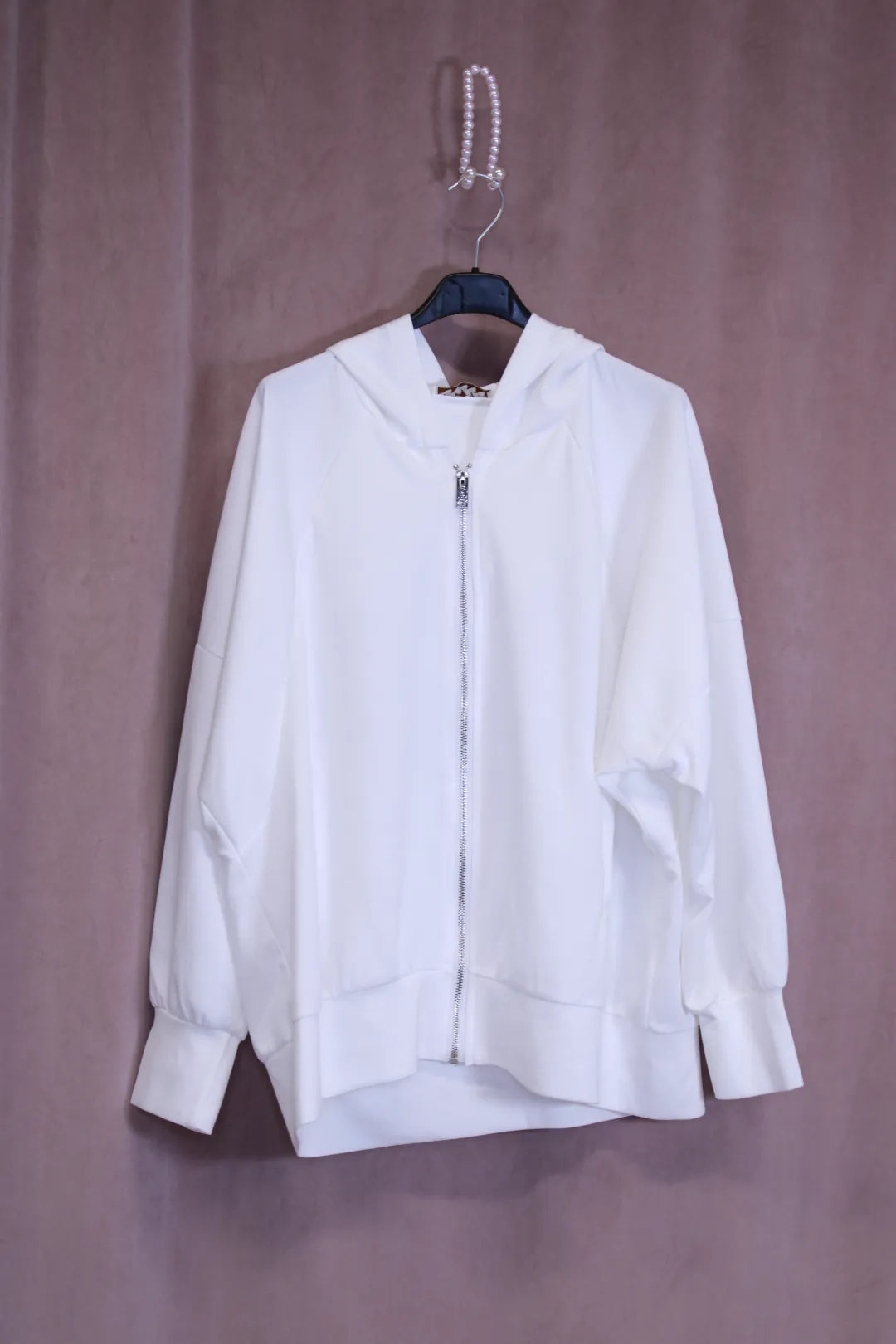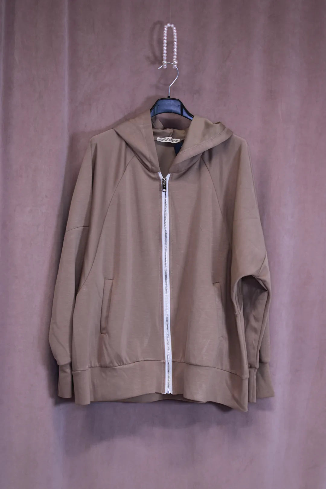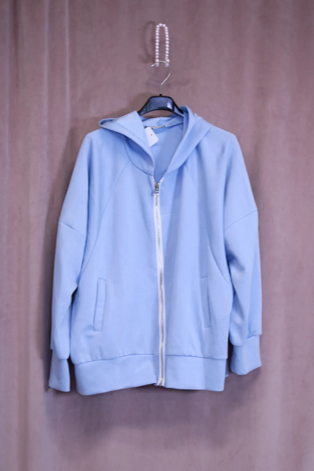 Tässä hupparissa yhdistyy siisti linjakkuus ja rento mukavuus. Pehmeä ja joustava materiaali laskeutuu kauniisti ja tuntuu miellyttävältä ihoa vasten. Hopeansävyinen vetoketju.