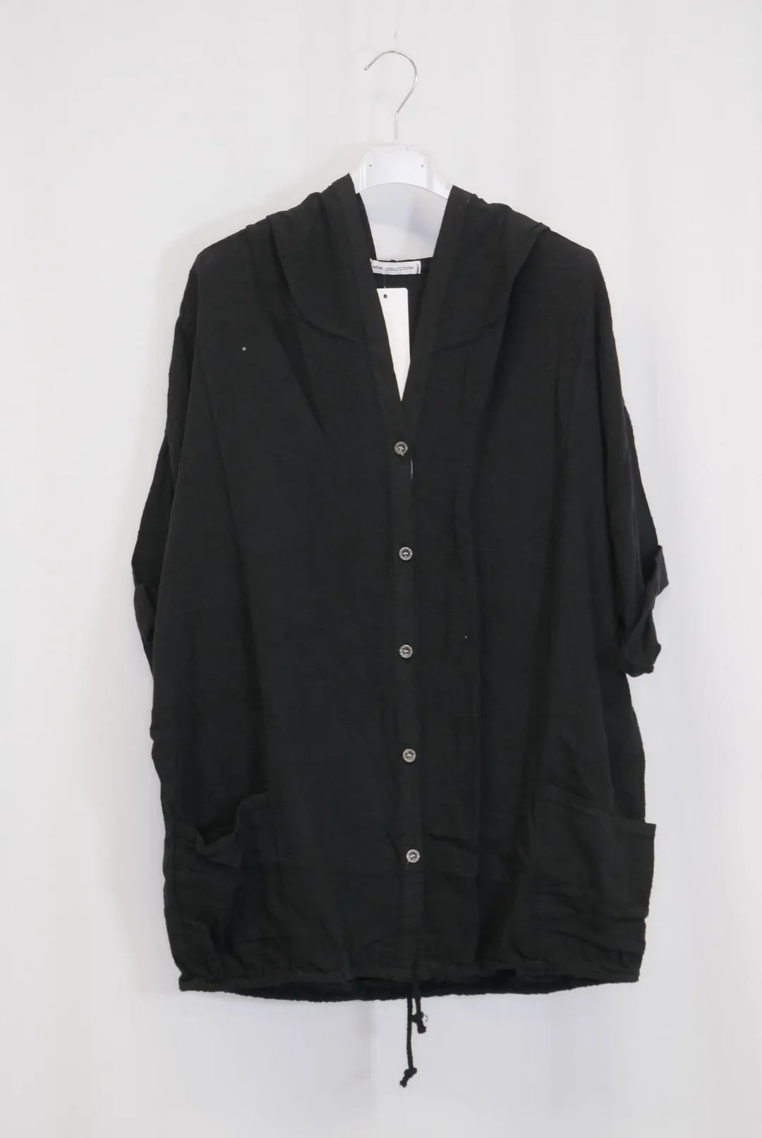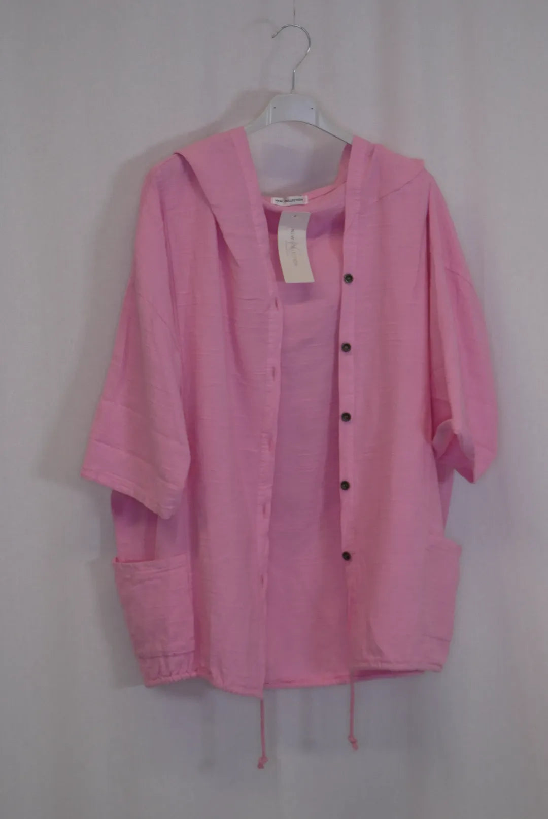 Ihanan ohut ja kevyt jakku, nappikiinnitys ja huppu. Helmassa nauha, jolla on mahdollista kiristää helmaa.