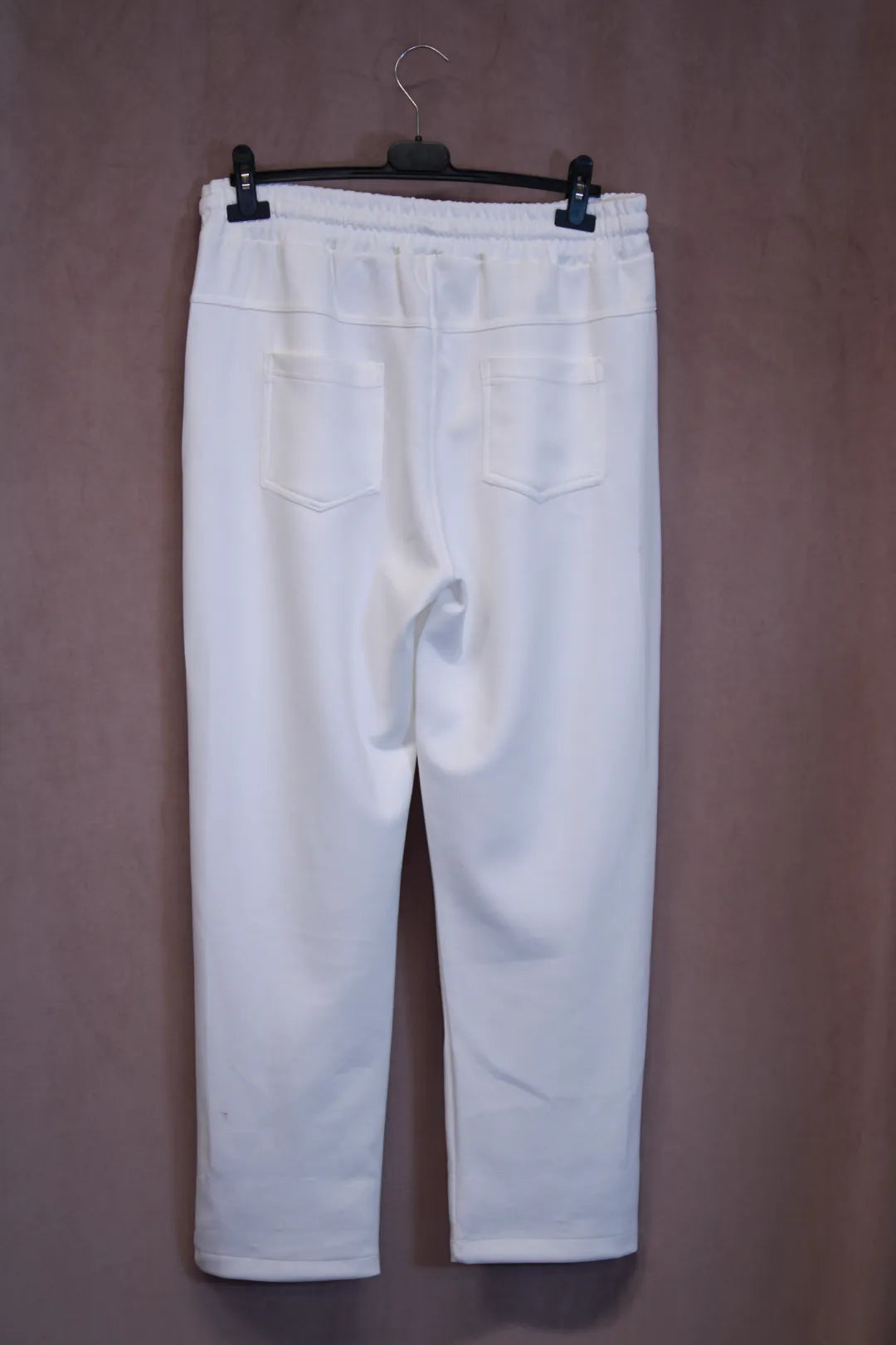 Nämä tyylikkäät ja käytännölliset housut on suunniteltu mukavuus edellä – tinkimättä tyylistä. Pehmeä ja joustava materiaali tuntuu miellyttävältä päällä koko päivän ajan, ja joustava vyötärö kiristysnyörillä takaa hyvän istuvuuden eri vartalotyypeille.