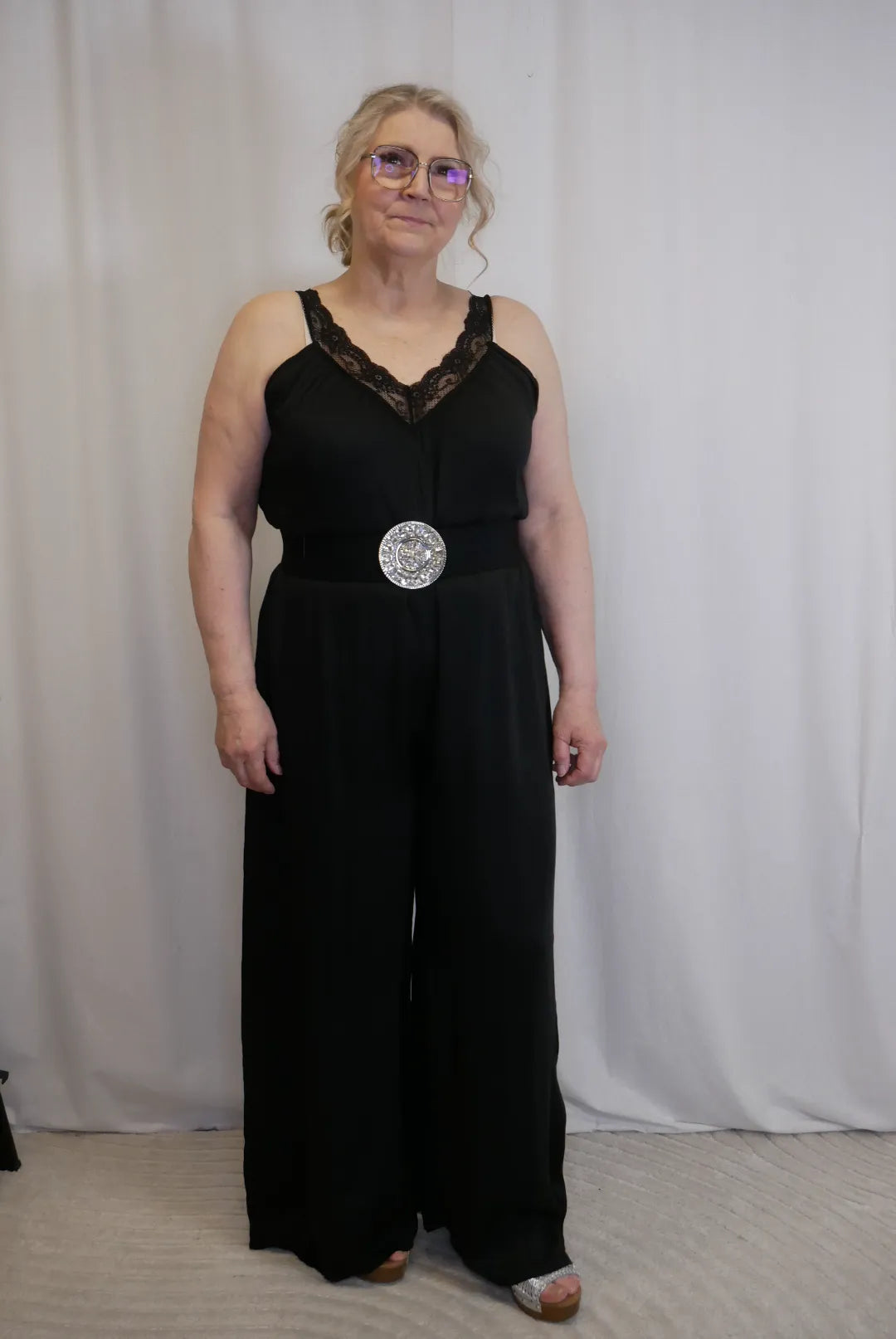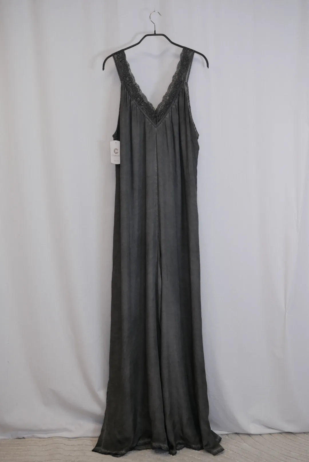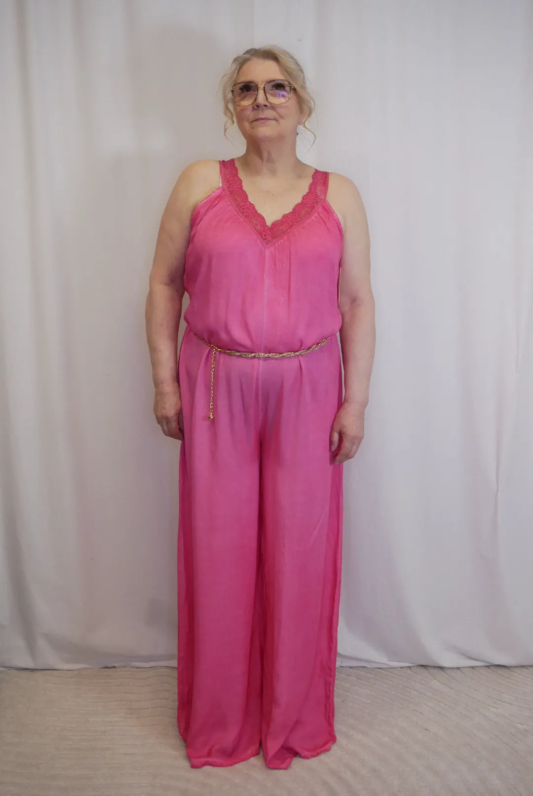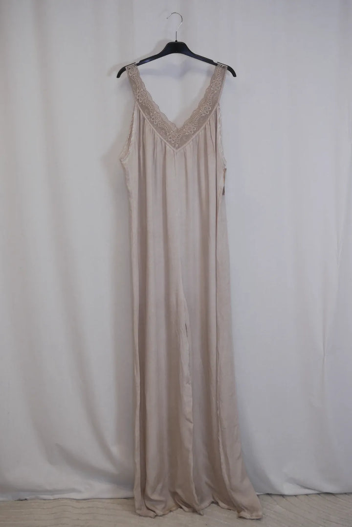 Kaunis pitkä, leveälahkeinen hihaton haalari.
