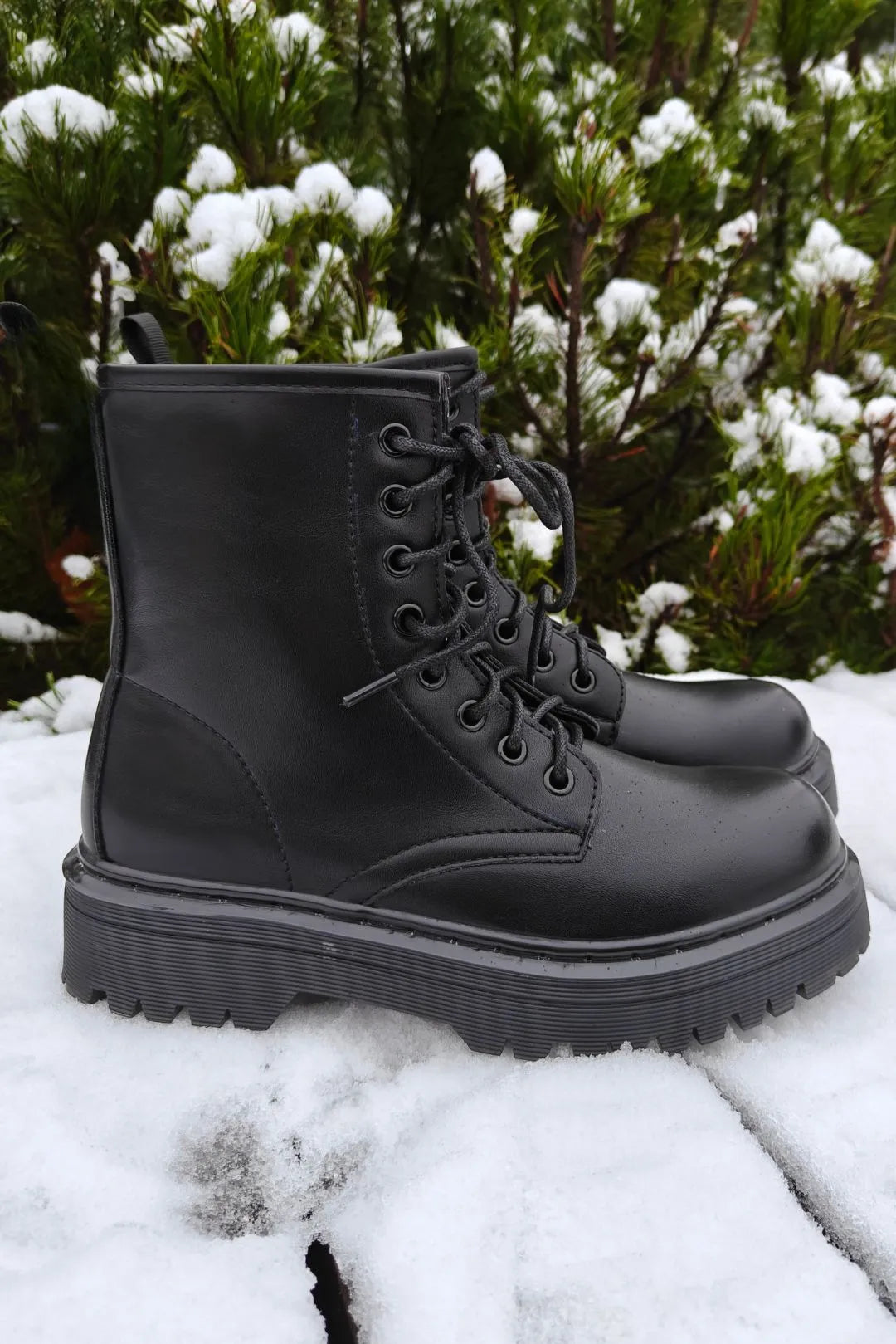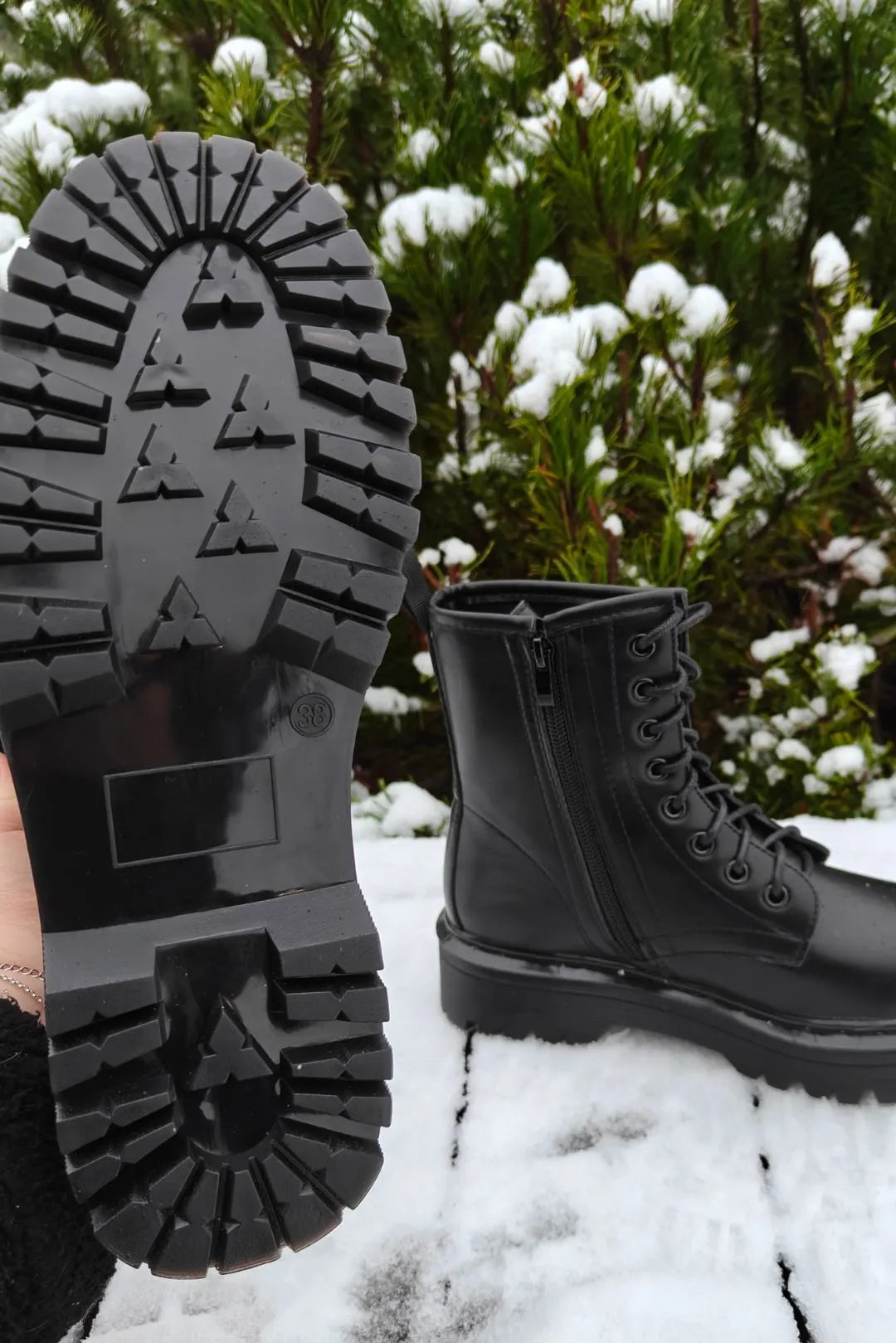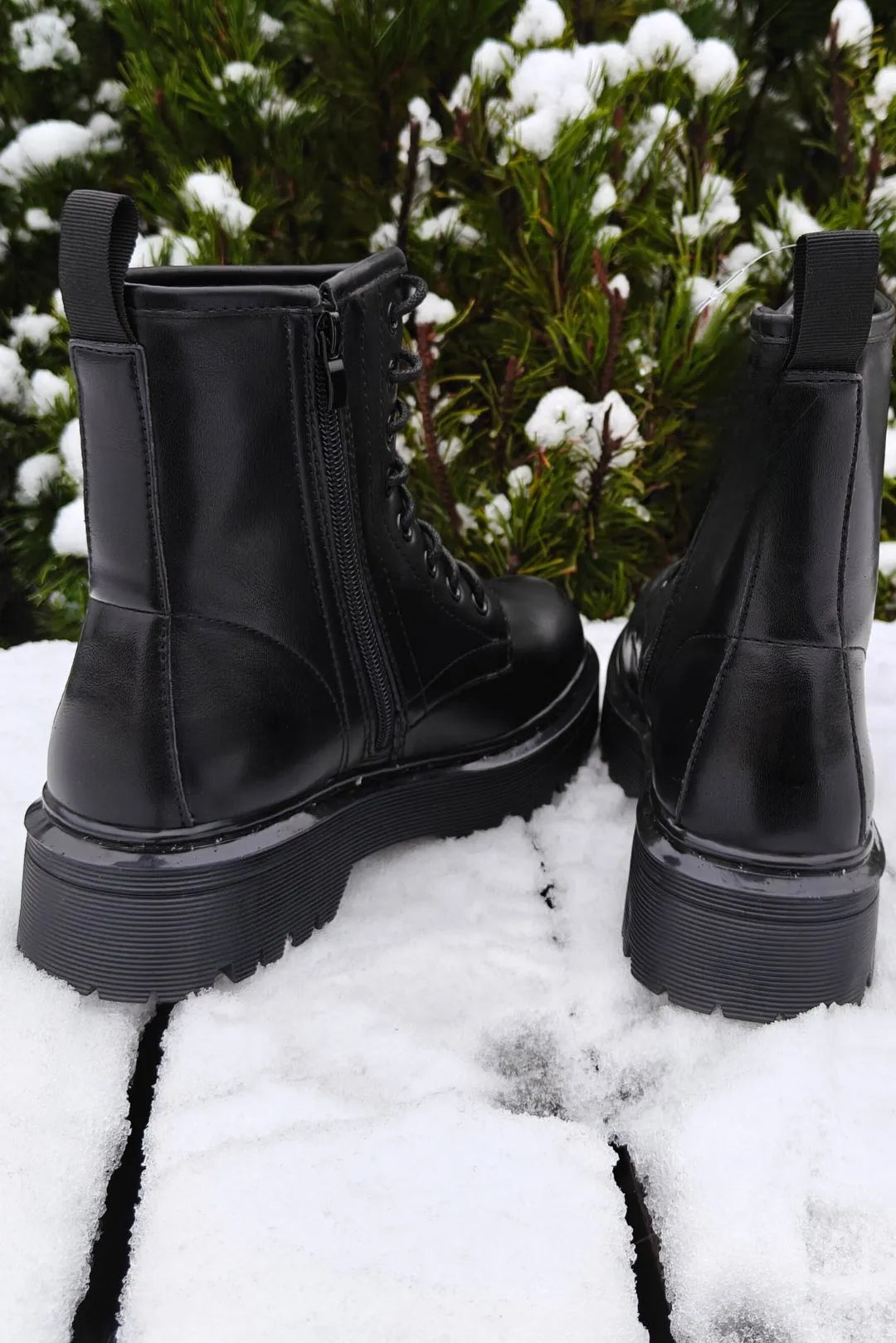 Kauniit yksinkertaiset mustat maiharit. Paksu ja kova pohja tekee kengästä tukevan. Sivulla vetoketju ja kiristyksenä nauhat. Nämä tyylikkäät mustat keinonahkaiset maiharit on helppo yhdistää asuun kuin asuun. Kengässä on kestävä kovamuovinen pohja, joka tuo tukevuutta ja selkeän sekä napakan tuntuman askellukseen. Materiaali ei ole joustava kumipohja, vaan selkeästi kovempi ja tukeva.