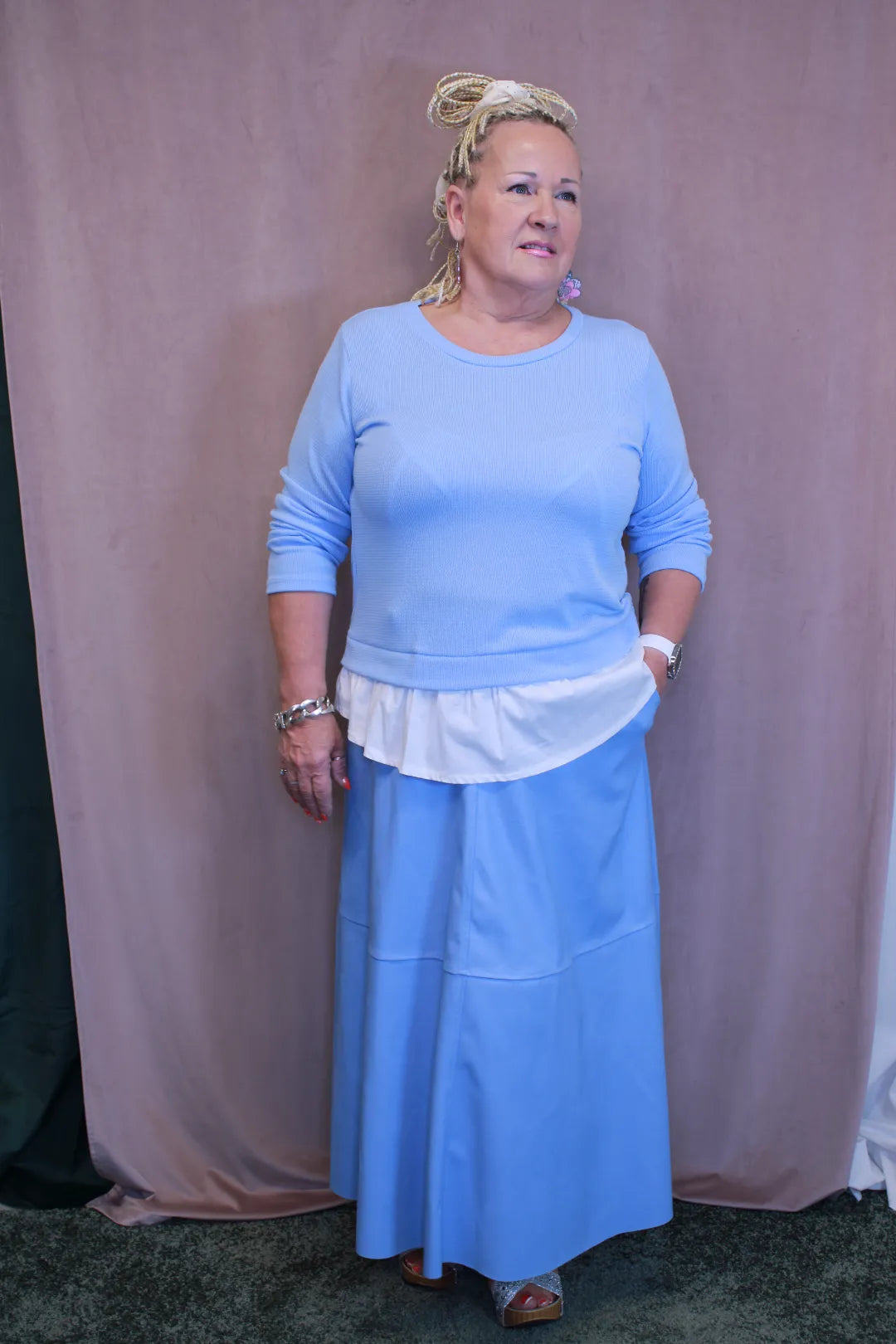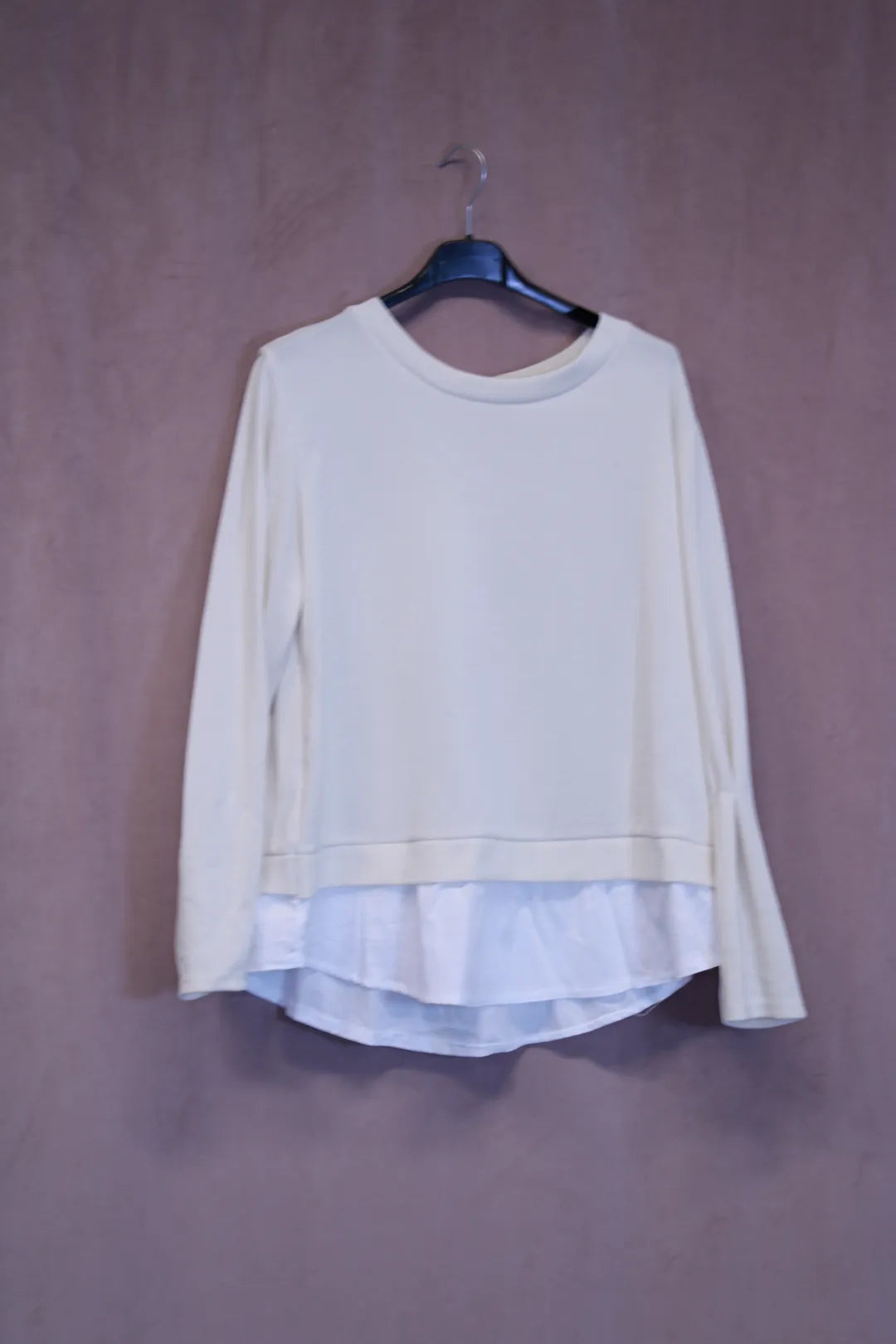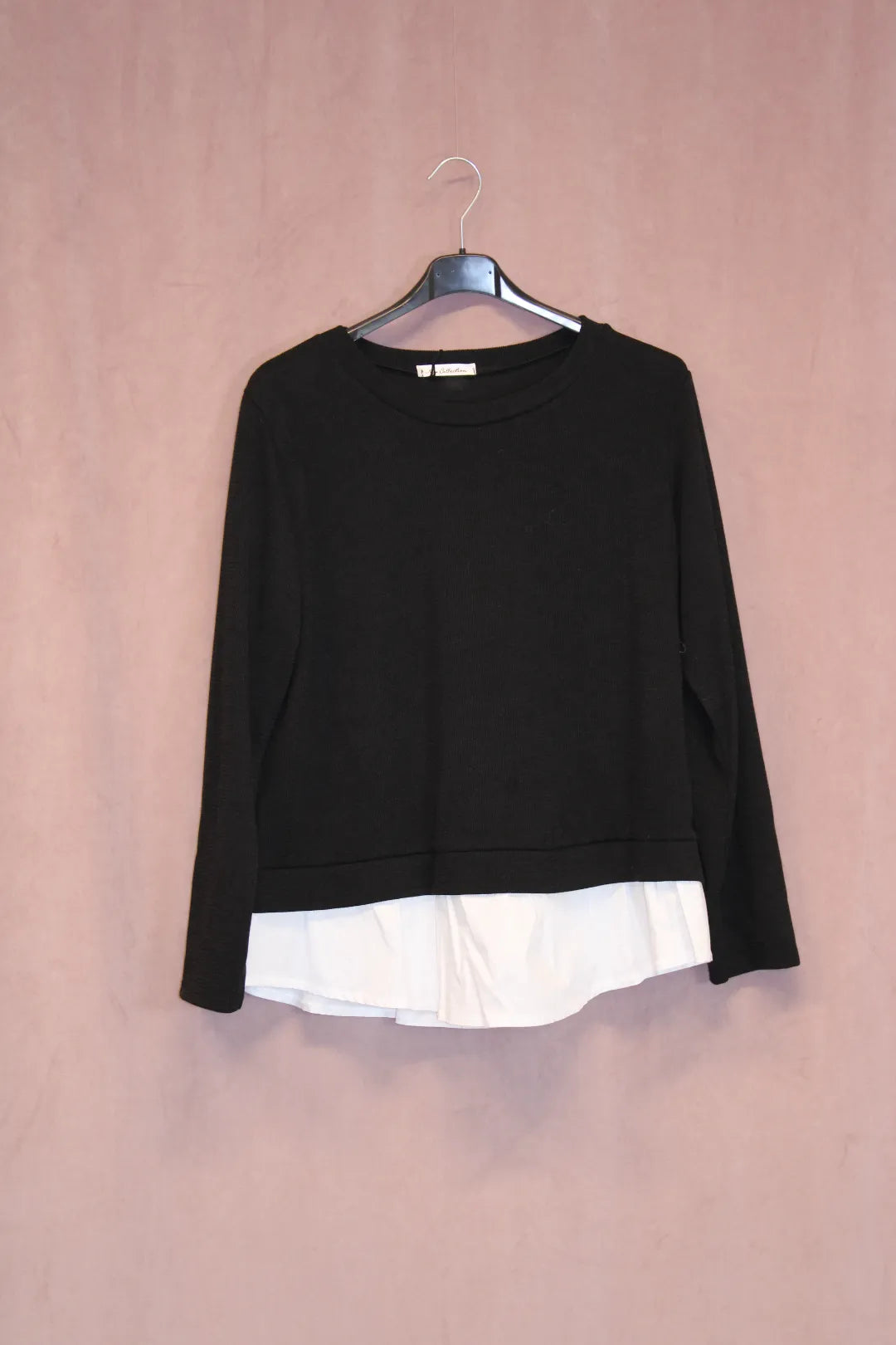 Mukava ja Ajattoman tyylikäs paita kauniilla kerrostetulla helmalla. Pehmeä ja joustava materiaali joka istuu kauniisti ja tuntuu miellyttävältä.