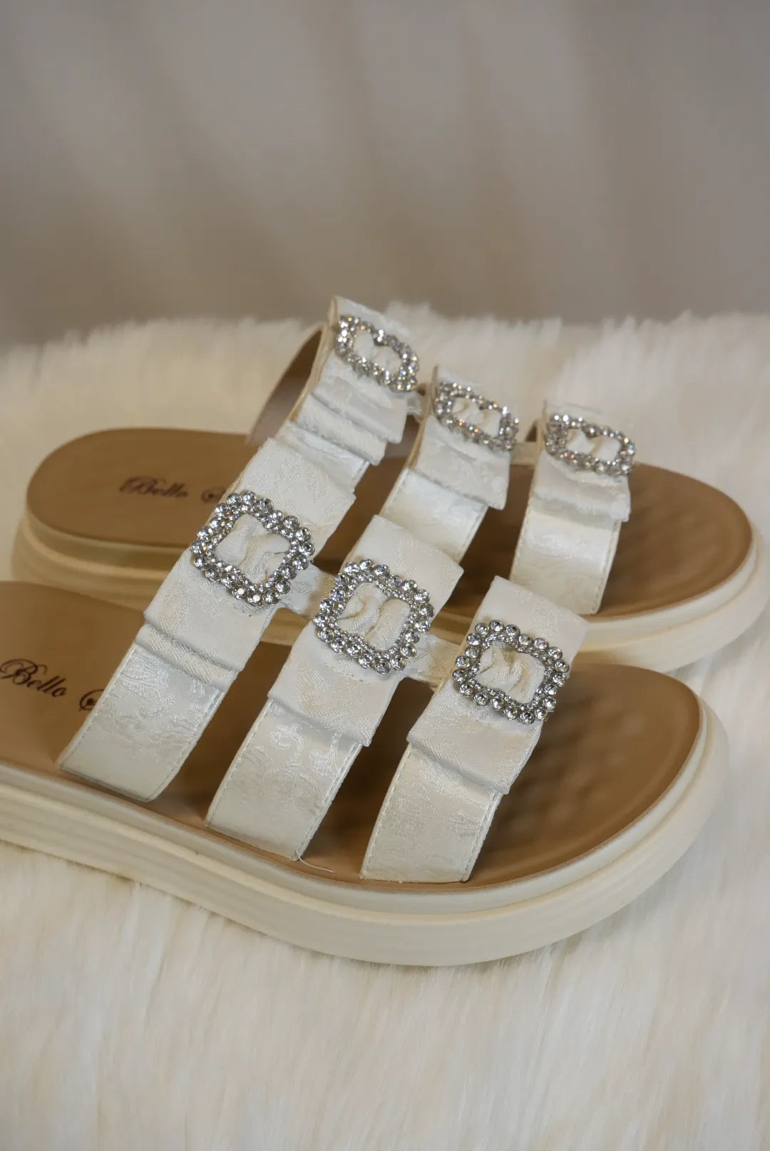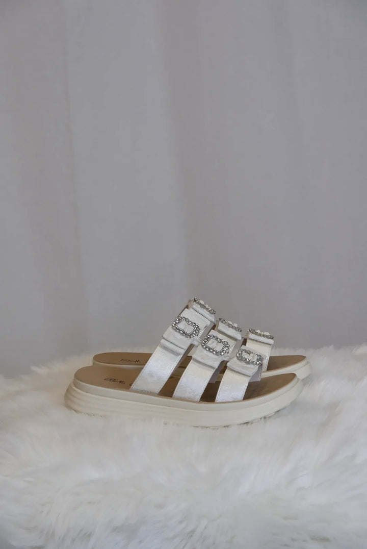 Kauniit sandaalit kolmella remmillä ja kauniilla timanttisoljilla.