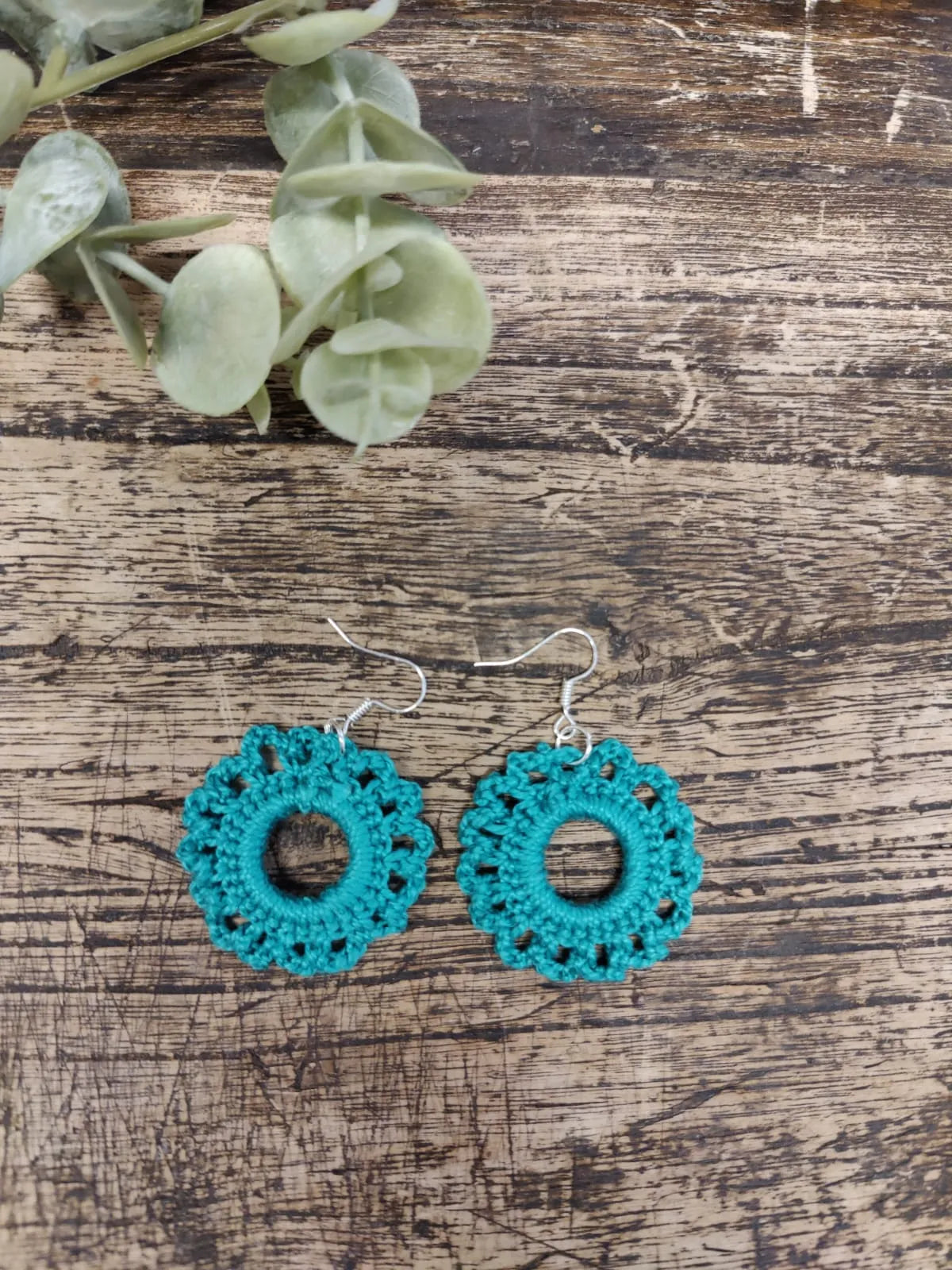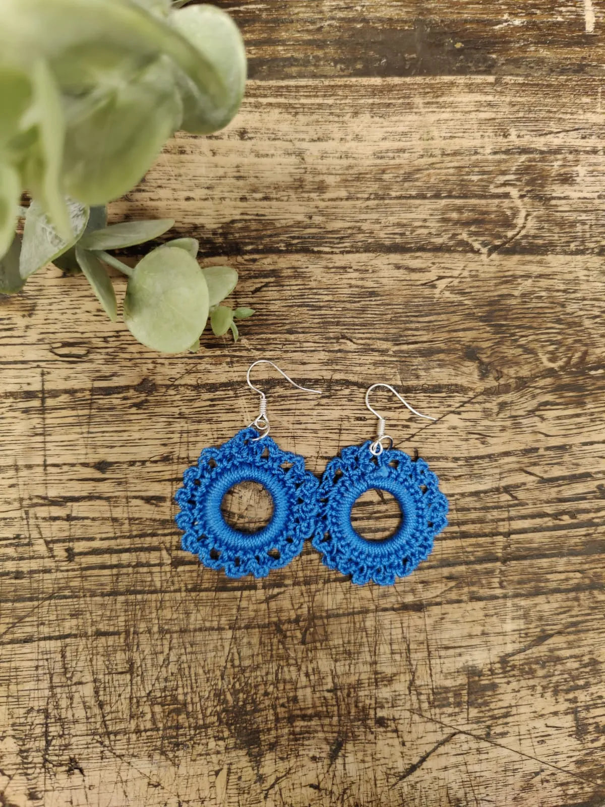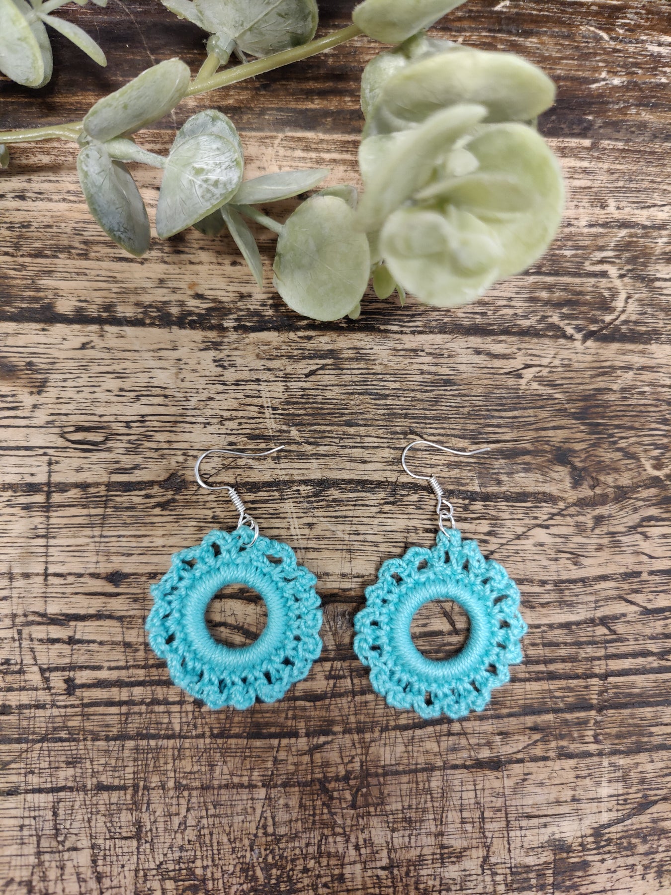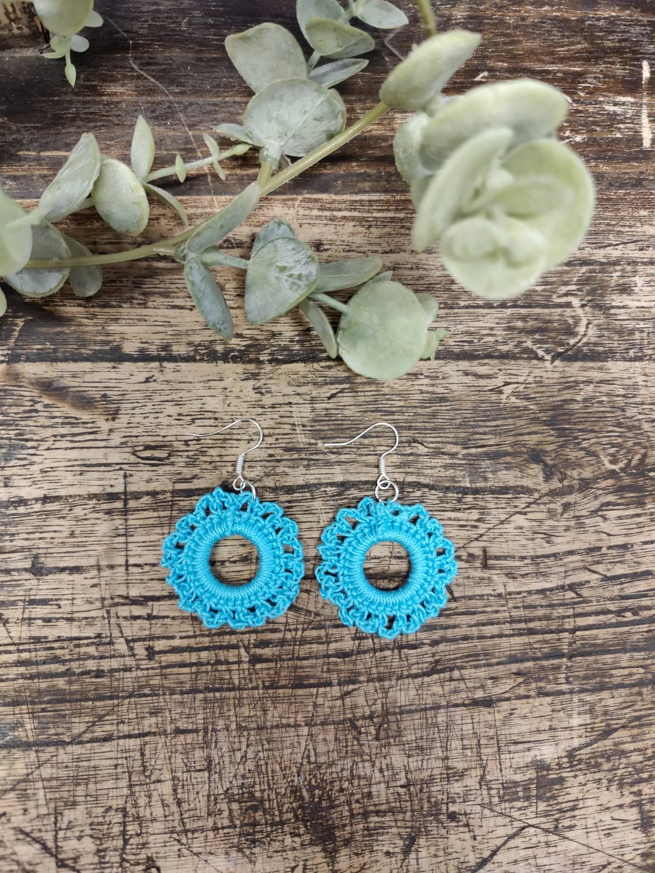 Näyttävät ja todella kauniit virkatut korvikset. Nämä korvikset sopivat mainiosti niin arkeen kuin juhlaankin. Korvikset ovat kevyet joka tekee niistä miellyttävän käyttää. Korvikset ovat valmistettu suomessa käsityönä joten jokainen pari on uniikki. Korviksien halkaisija on n. 3cm.