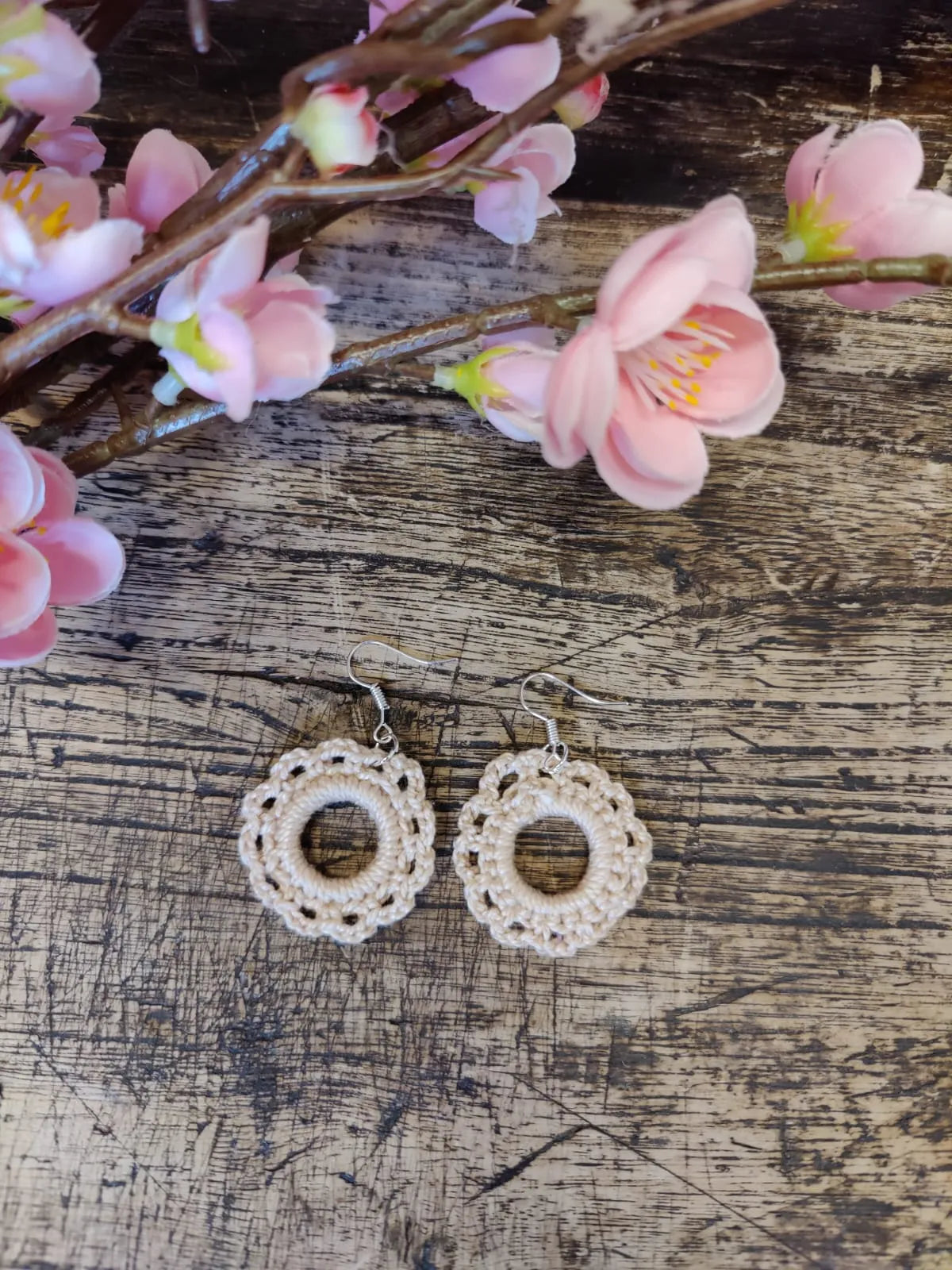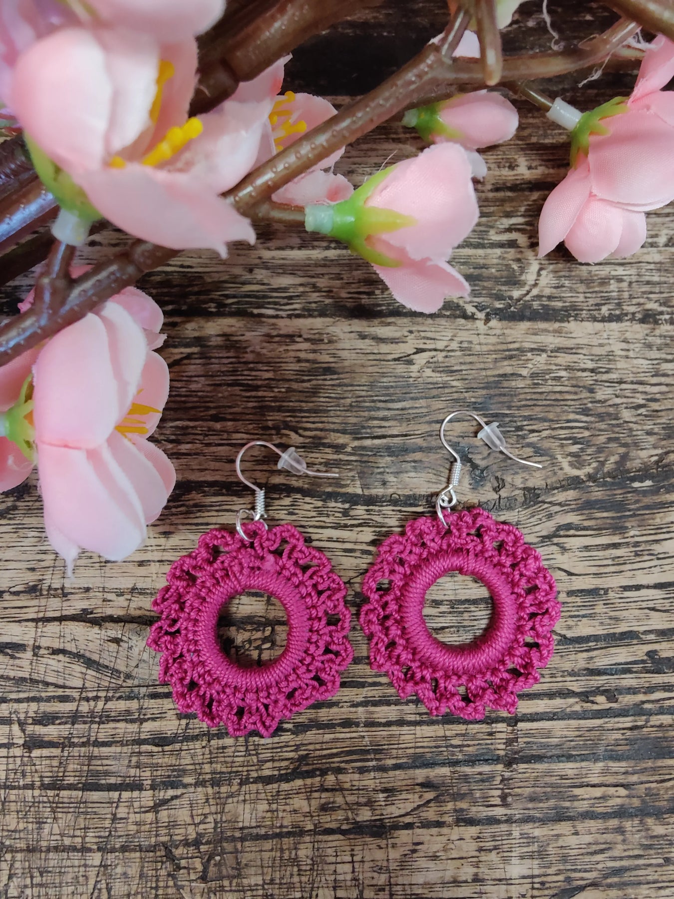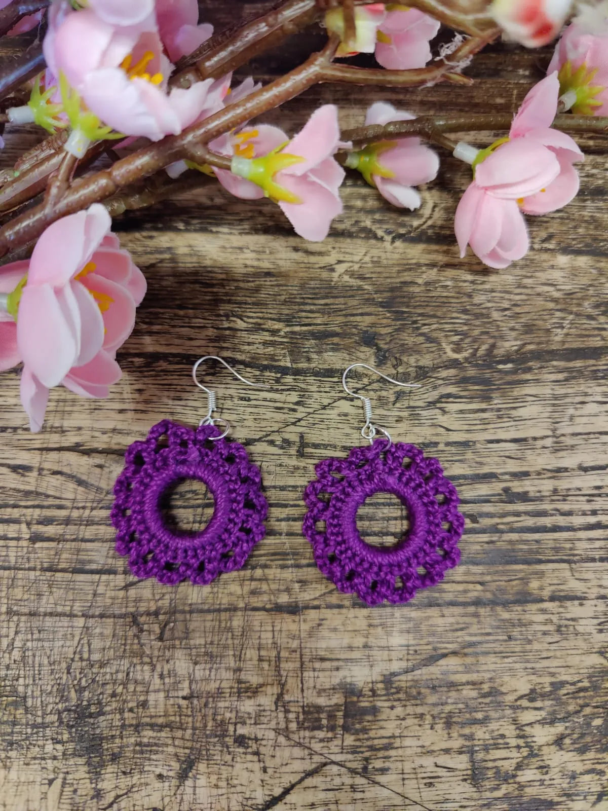 Näyttävät ja todella kauniit virkatut korvikset. Nämä korvikset sopivat mainiosti niin arkeen kuin juhlaankin. Korvikset ovat kevyet joka tekee niistä miellyttävän käyttää. Korvikset ovat valmistettu suomessa käsityönä joten jokainen pari on uniikki. Korviksien halkaisija on n. 3cm.