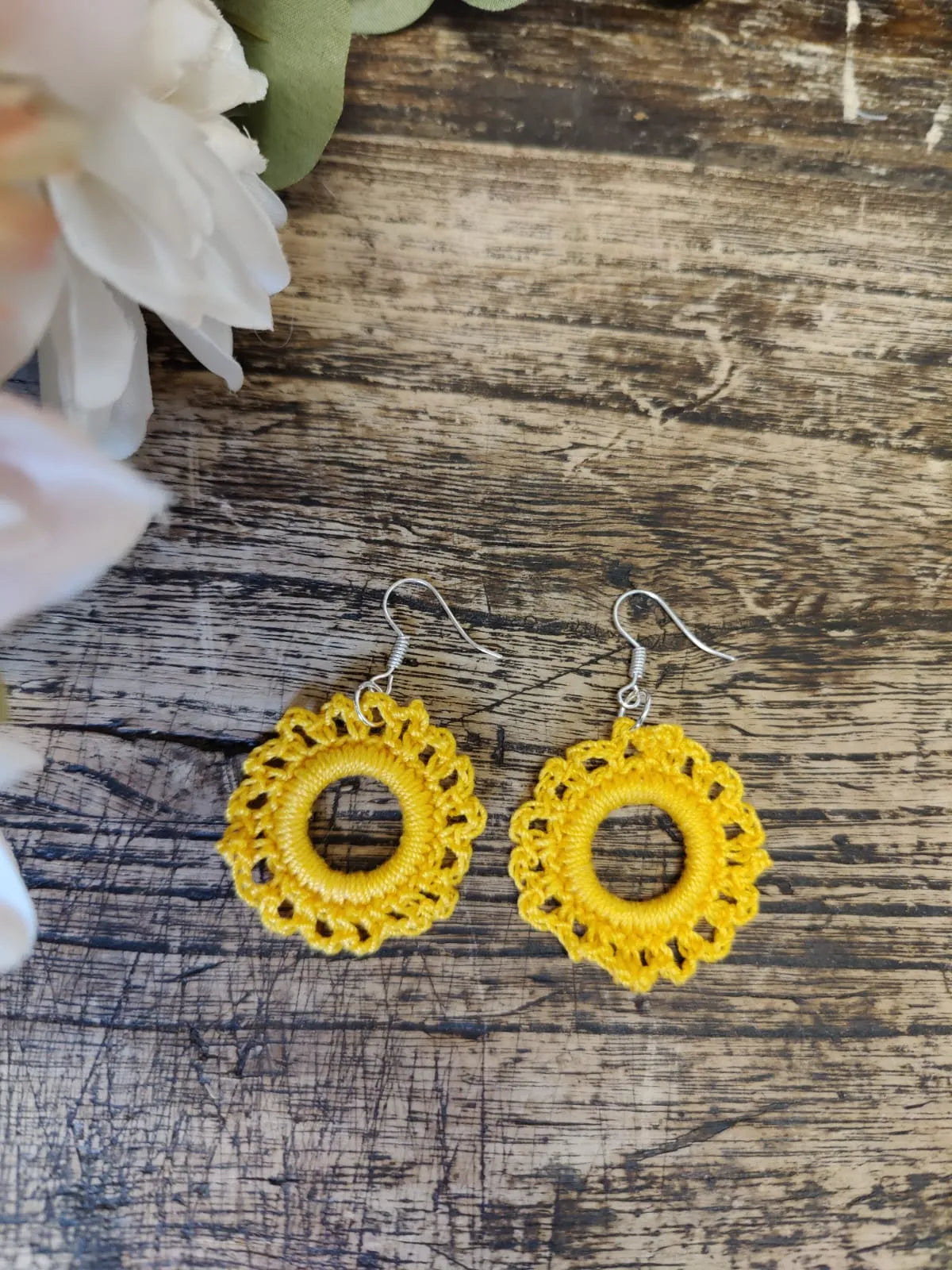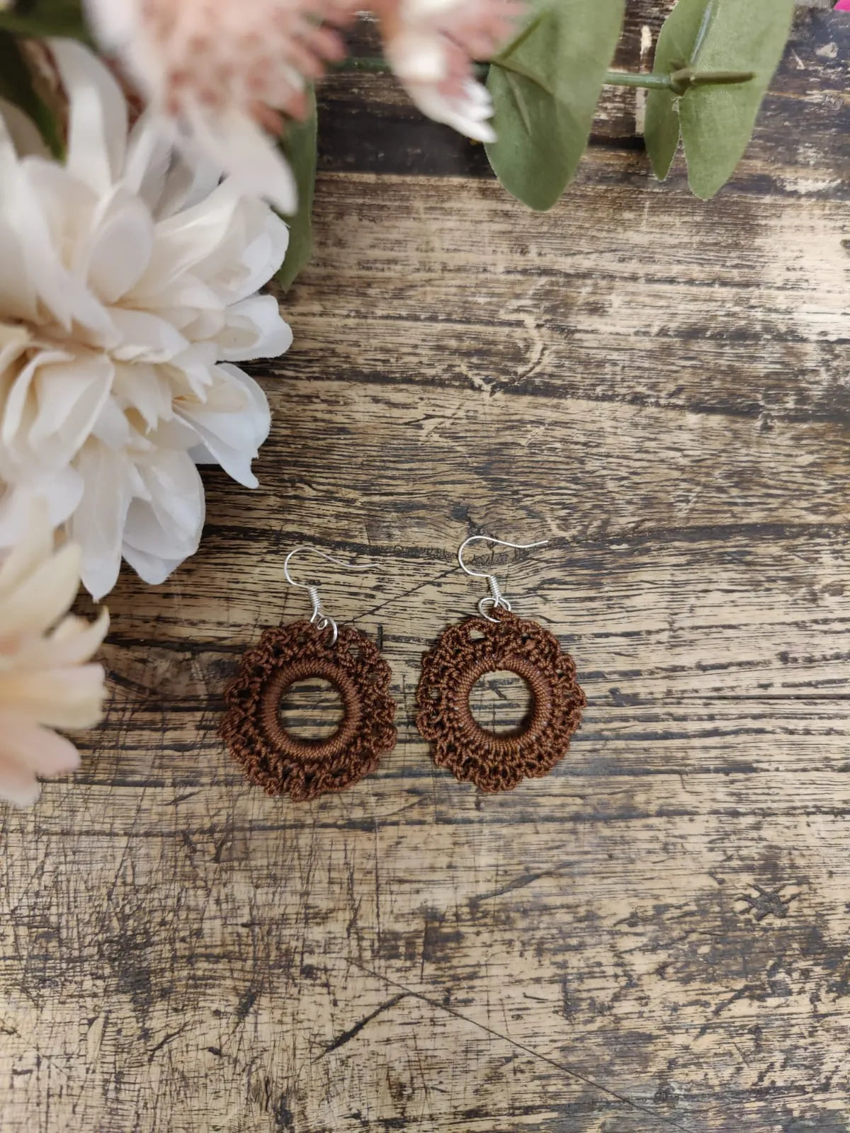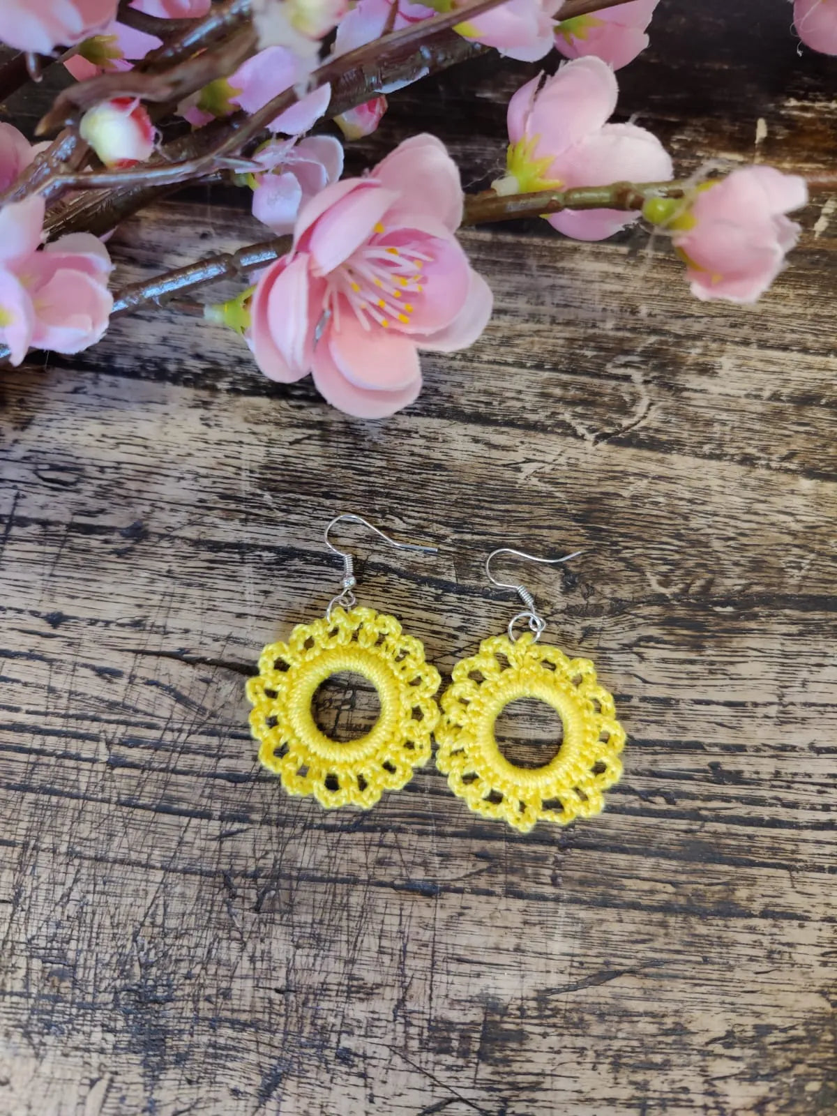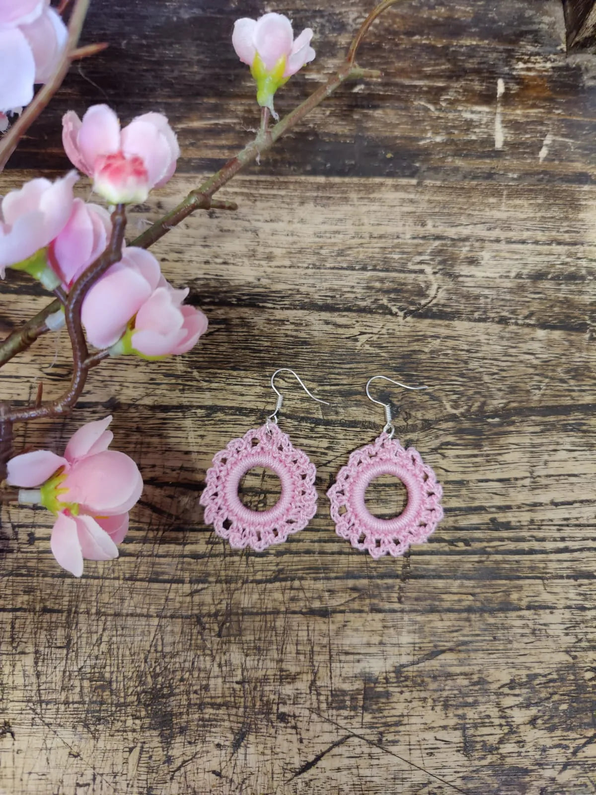 Näyttävät ja todella kauniit virkatut korvikset. Nämä korvikset sopivat mainiosti niin arkeen kuin juhlaankin. Korvikset ovat kevyet joka tekee niistä miellyttävän käyttää. Korvikset ovat valmistettu suomessa käsityönä joten jokainen pari on uniikki. Korviksien halkaisija on n. 3cm.